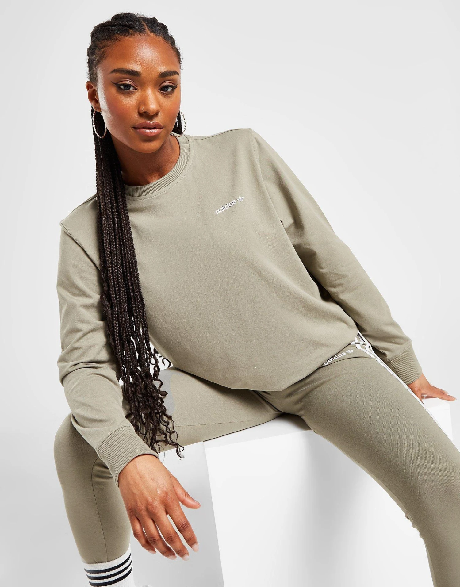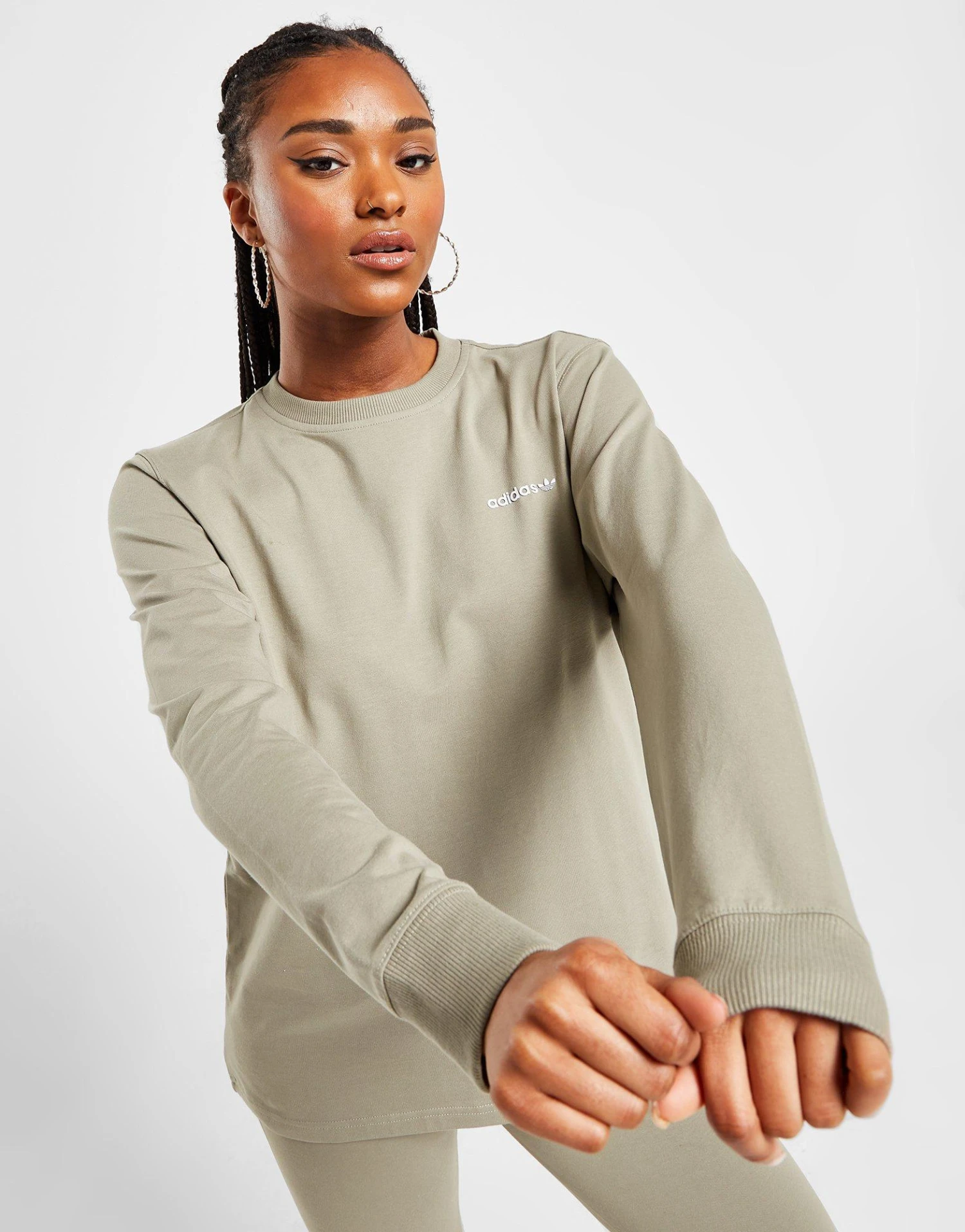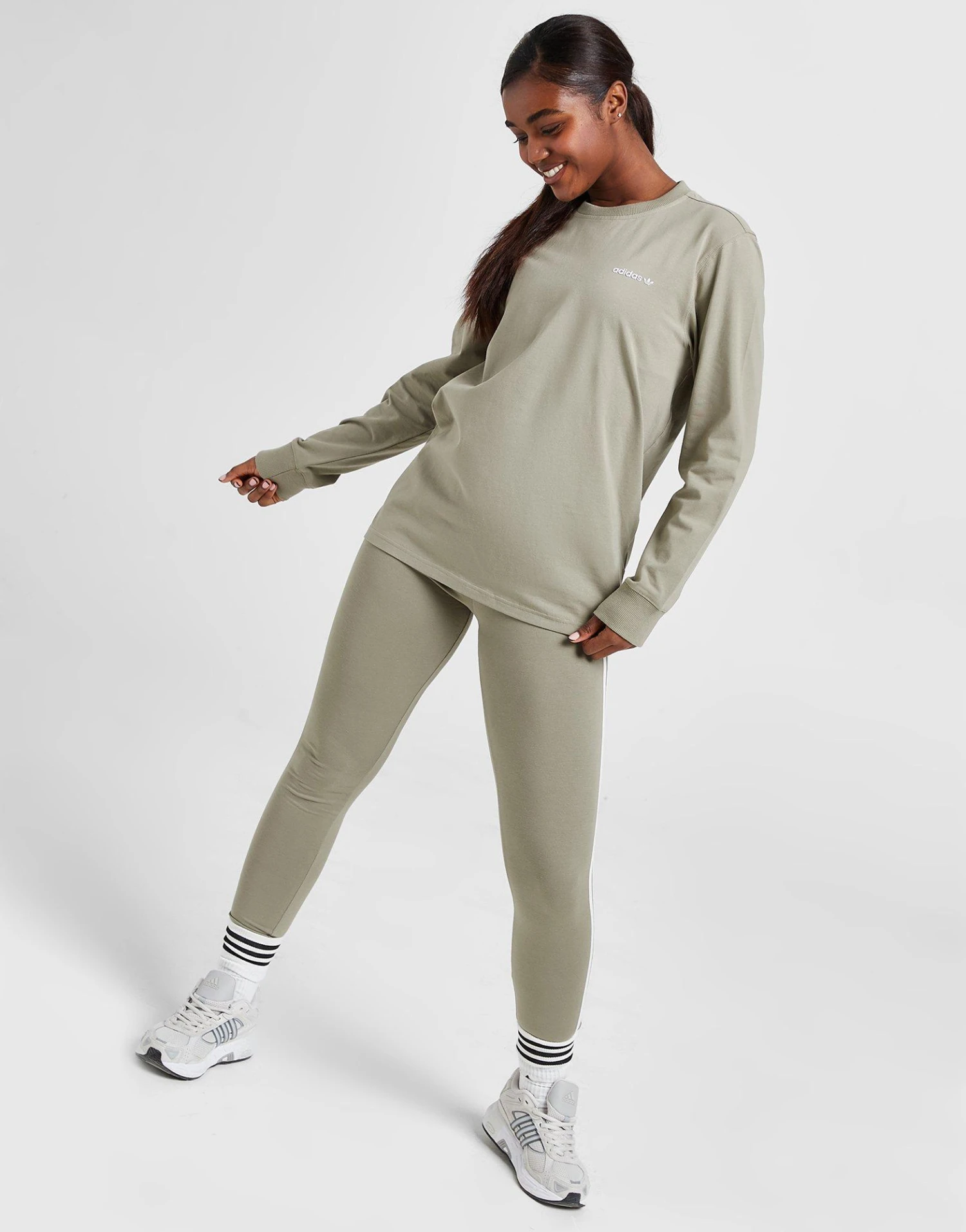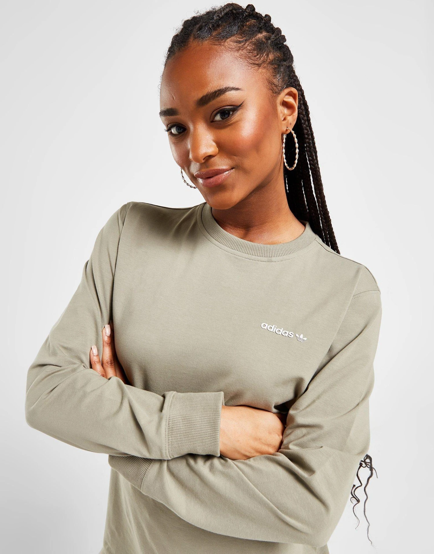 Update your everyday looks with this women’s Linear Long Sleeve T-Shirt from adidas Originals. Coming in a Sage colourway, this JD-exclusive tee is made with super-soft, lightweight cotton with extra stretch for essential comfort. It features a ribbed crew neckline and long sleeves for an easy feel, and ribbed cuffs to secure the fit. Finished up with an adidas wordmark to the back, and signature branding to the chest. Machine washable. | Our model is 5’7″ and wears a size small. | HY3830
