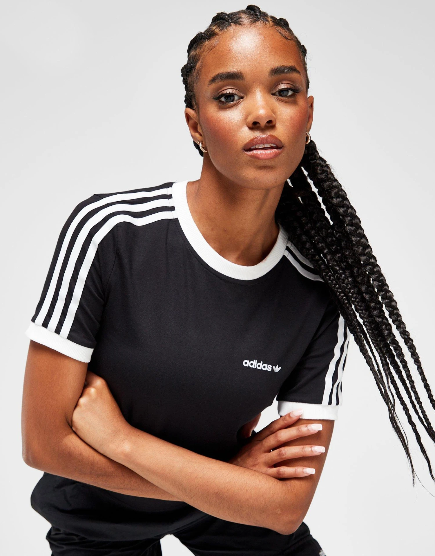 Keep it classic with this women’s Slim 3-Stripes T-Shirt from adidas Originals. In a Black and White colourway, this JD-exclusive, slim fit t-shirt is cut from light, stretchy cotton fabric for an easy, everyday feel. It features short sleeves with a ribbed crew neckline and is finished up with 3-Stripes to the sleeves and a Trefoil to the chest. Machine washable | Our model is 5’6″ and wears a size small. | IM1889