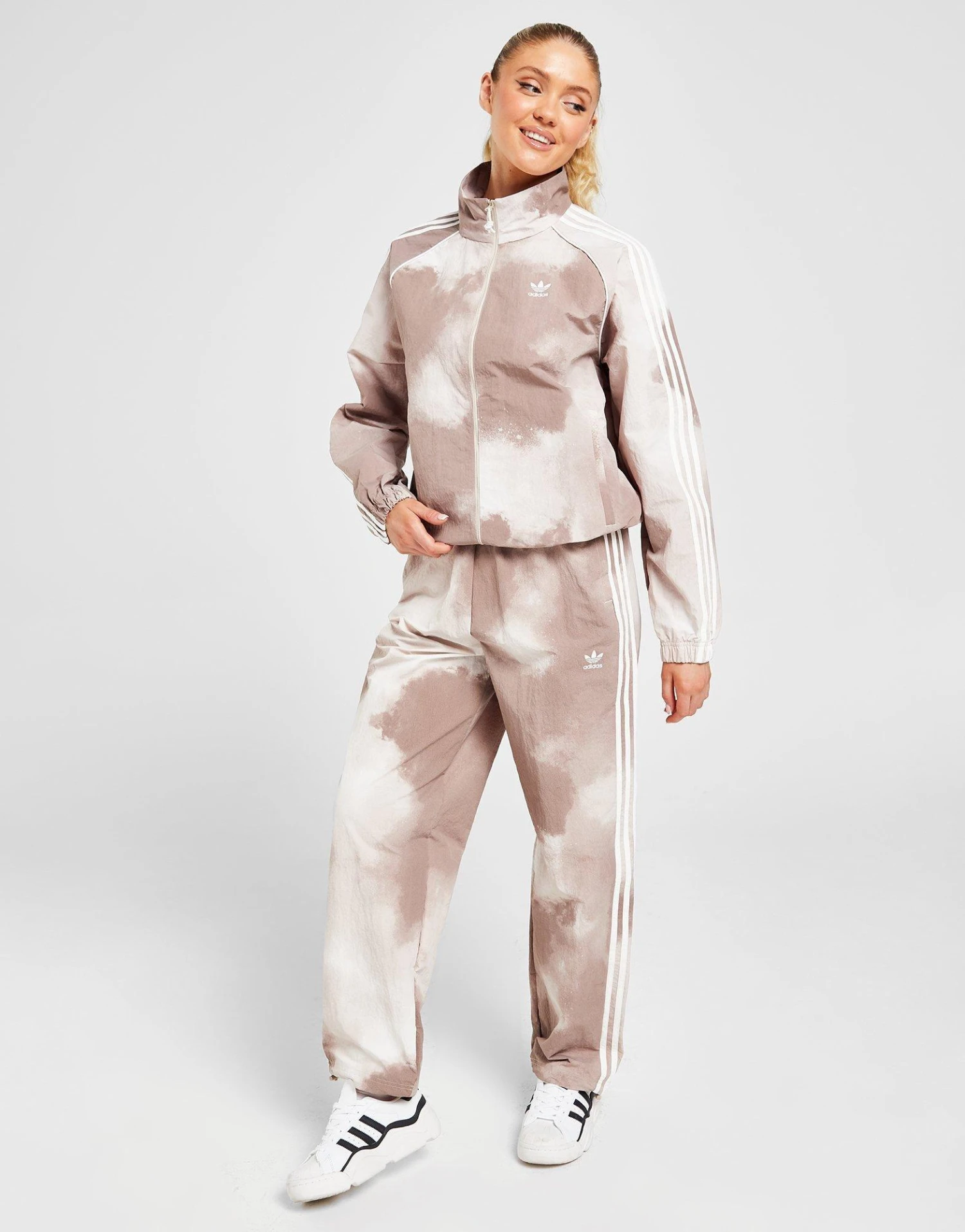 Cop a sports-inspired layer with this women’s Trefoil Windbreaker Jacket from adidas Originals. In a Wonder Beige colourway, this regular-fit jacket is made with a smooth, lightweight woven nylon fabric for lasting comfort. It features a full-length zipper with a stand-up collar, with elasticated cuffs and a bungee-toggled hem to adjust the fit.It has zip pockets throughout to stash your essentials, and is finished with adidas’ legendary 3-Stripes down the sleeves and signature Trefoil branding to the chest. Machine washable. | Our model is 5’8″ and wears a size small. | II5655