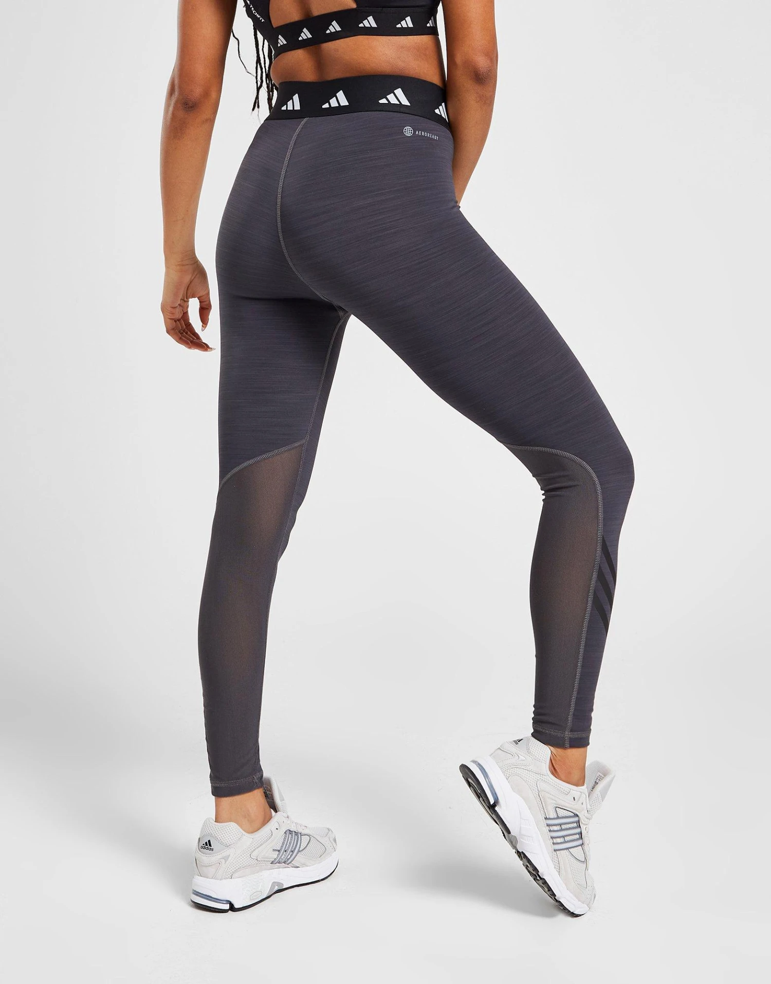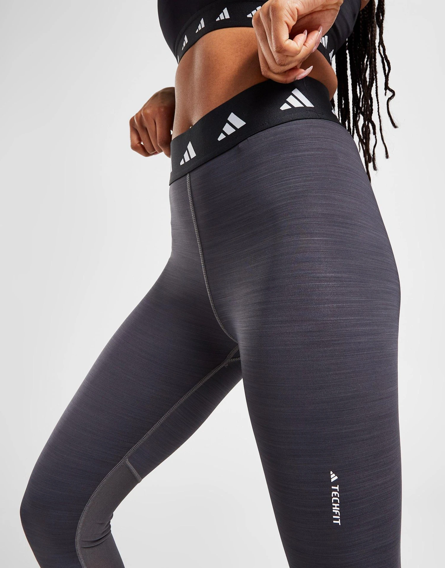 Stay focussed on your workout with these women’s Techfit Tights from adidas. In a Dark Grey Heather colourway, these slim fit tights are cut from smooth, supportive Techfit fabric that partly uses recycled polyester. They’re equipped with AEROREADY tech that wicks away sweat and have mesh panels for ventilation that helps you stay cool. They come with an elasticated, high-rise waistband for the perfect fit and are signed off with Badge of Sport logos to the waist. Machine washable | Our model is 5’7″ and wears a size small. | HR9638