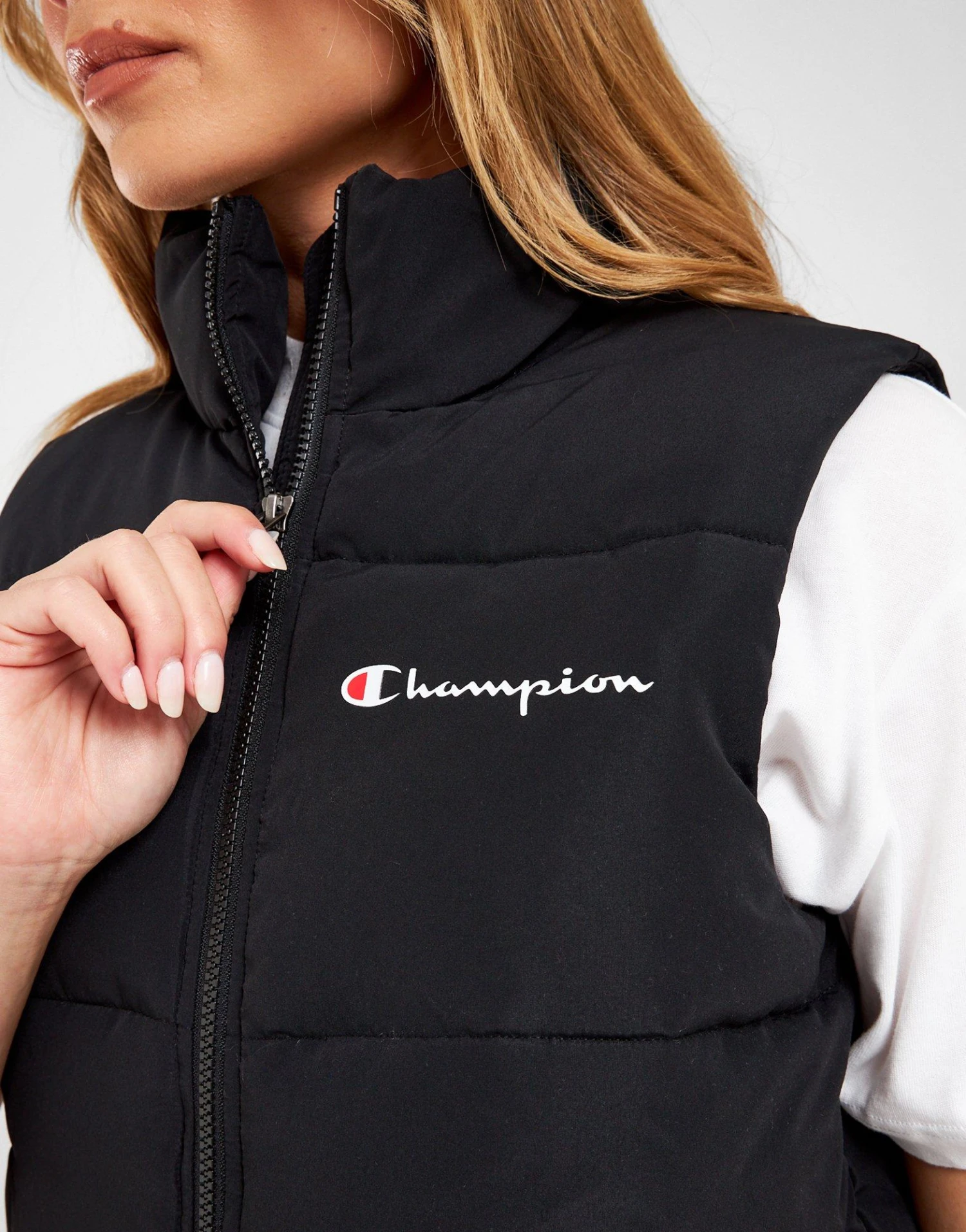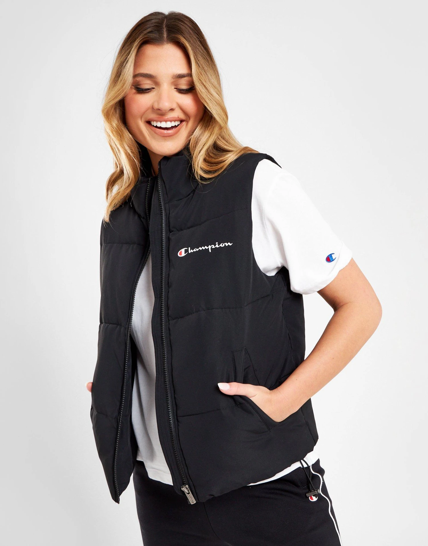 Hit the streets in standout style with this women’s Rochester Puffer Vest from Champion. In a black colourway, this boxy-fit gilet is cut from lightweight yet durable ripstop fabric, with polyester insulation for extreme comfort and warmth. It features a full zip front and raised neckline, with side pockets for the essentials. Finished off with signature Champion branding.