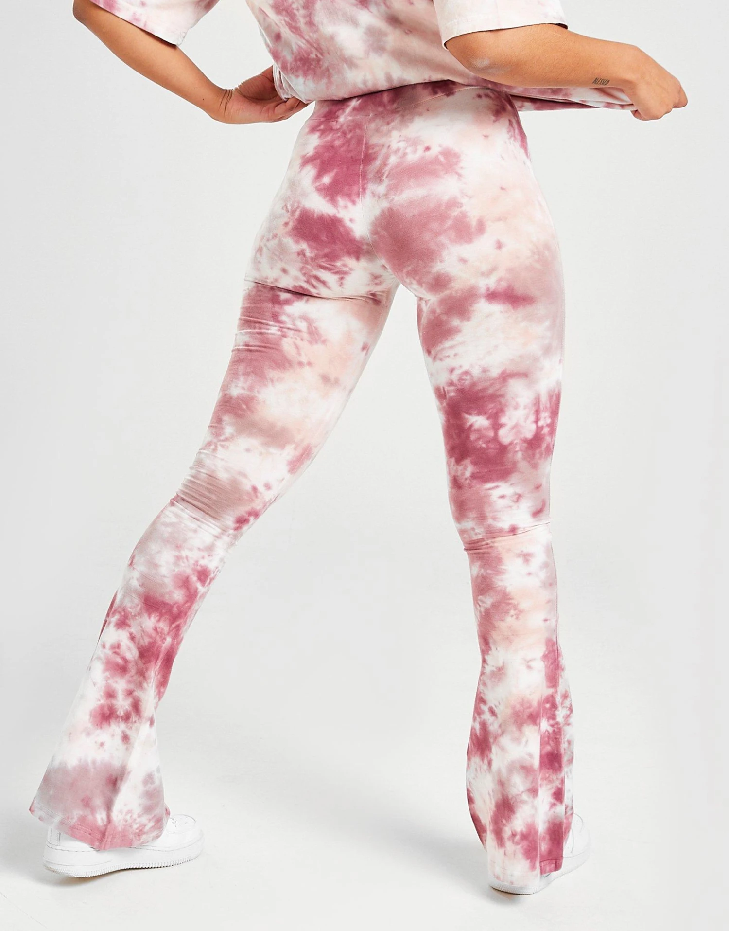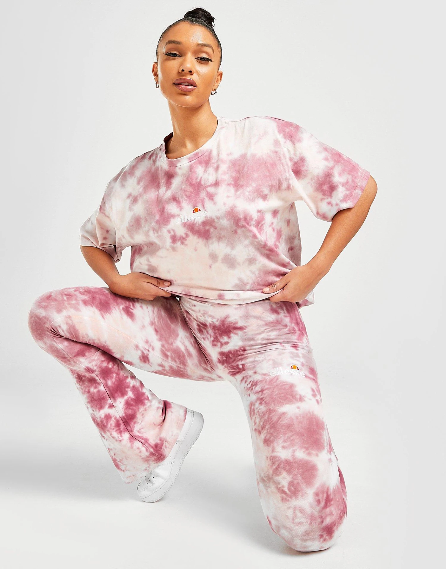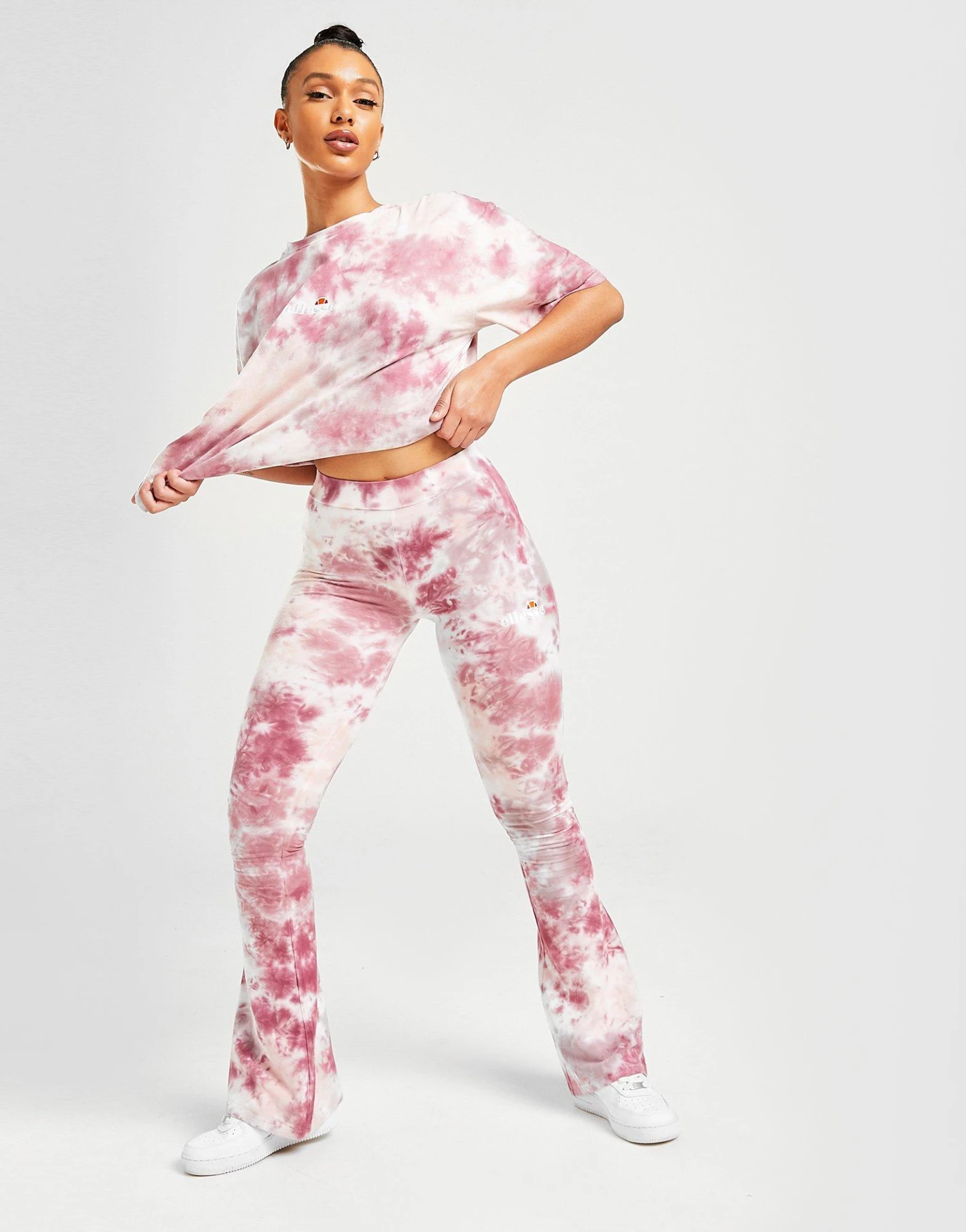 Work a ’70s look with these women’s Tie Dye Flare Pants from Ellesse. In a pink and white tie dye design, these pants are made from stretchy jersey fabric in a figure hugging fit. With an elastic waistband, these pants are finished up with Ellesse branding. Machine washable. | Our model is 5’7″ and wears a size 8.