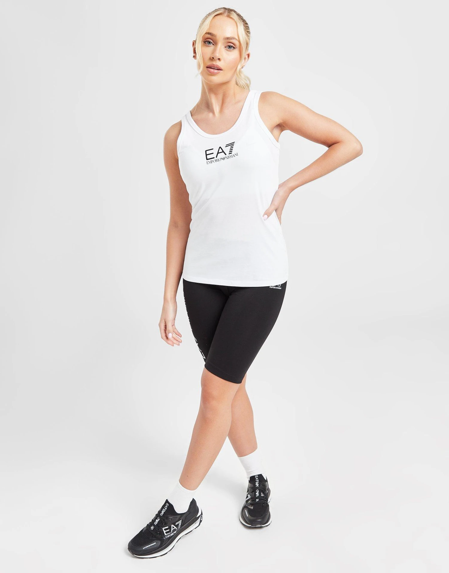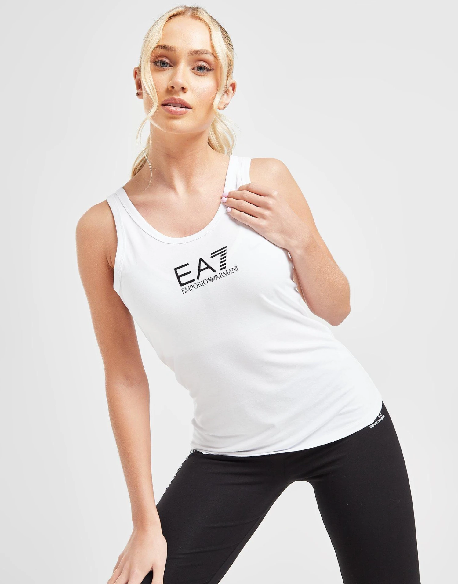 Keep it premium with this women’s Logo Tank Top from Emporio Armani EA7. Landing in a White colourway, this regular-fit top is cut from a soft and stretchy cotton fabric for lasting comfort. It features a scoop neckline with a sleeveless design for easy wear. Signed off with EA7 branding to the chest. Machine washable. | Our model is 5’5″ and wears a size small.
