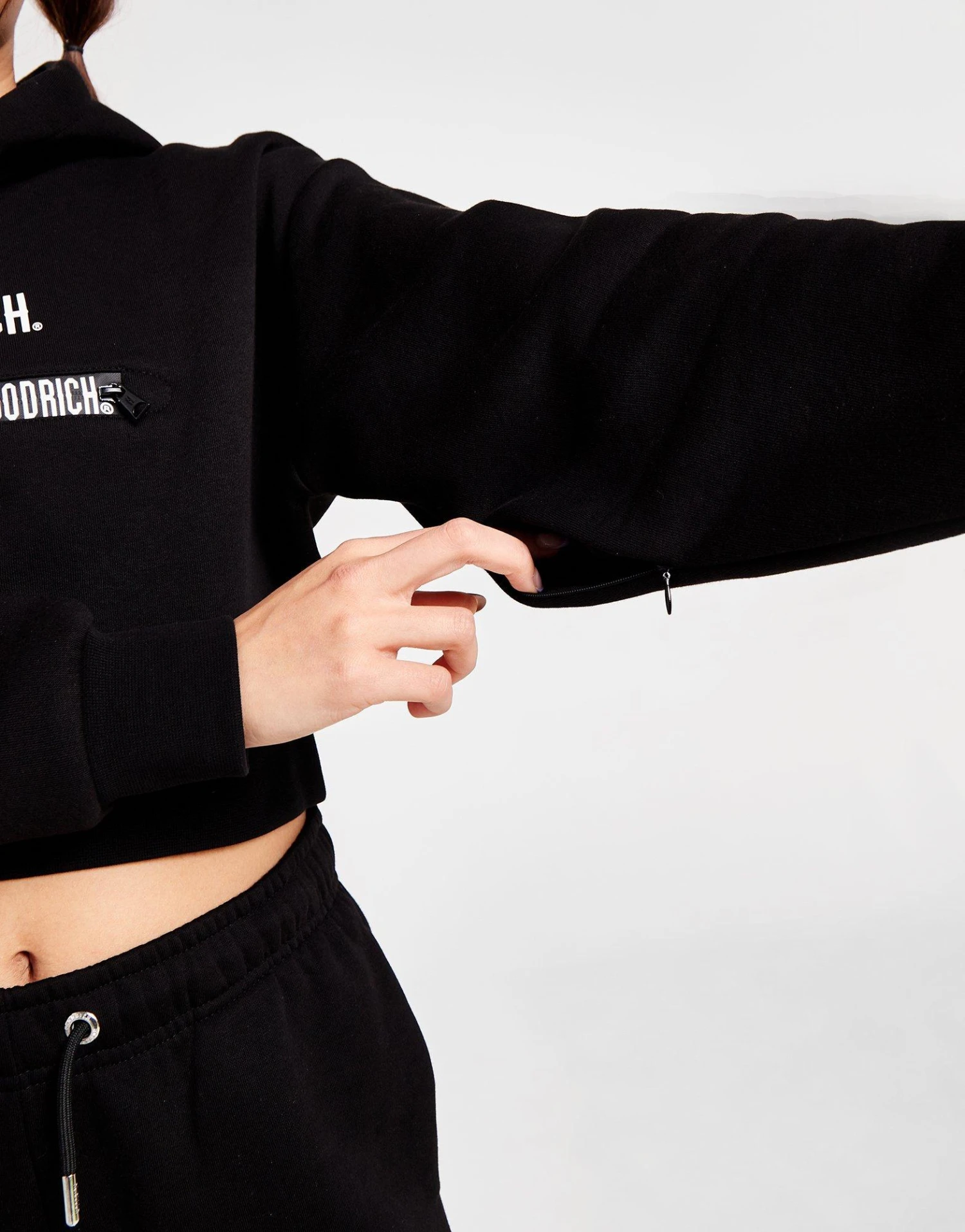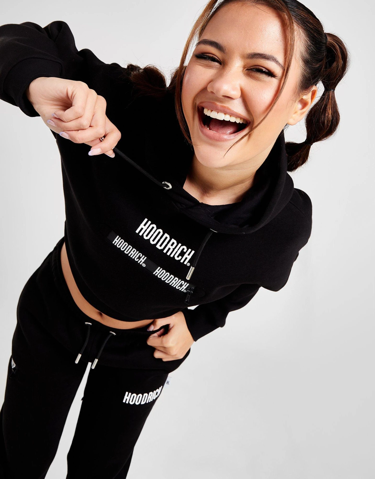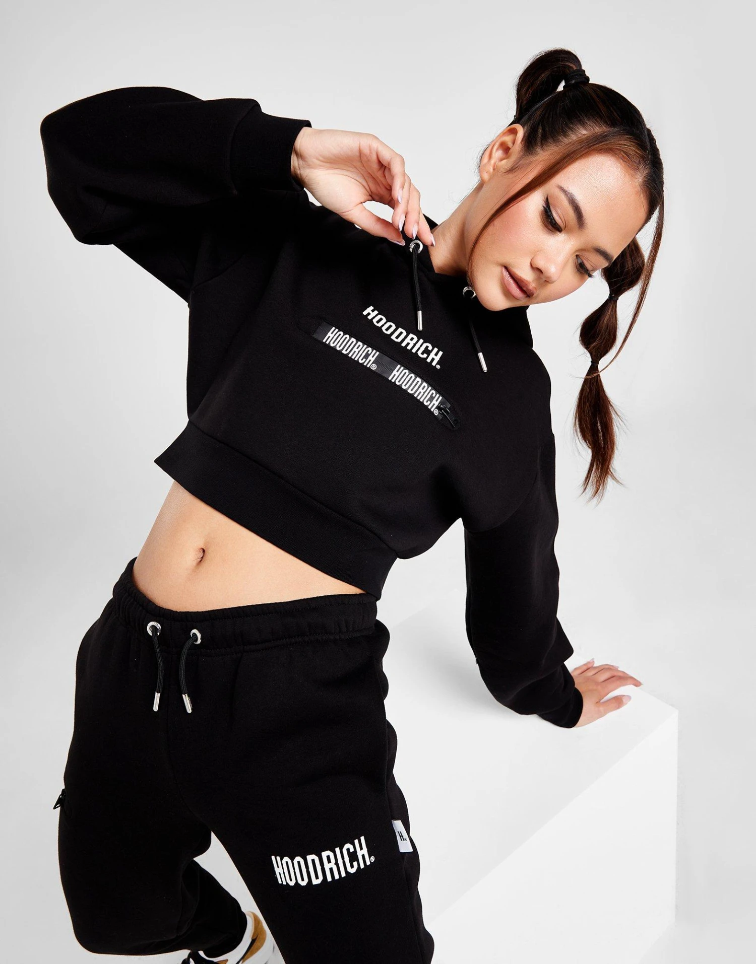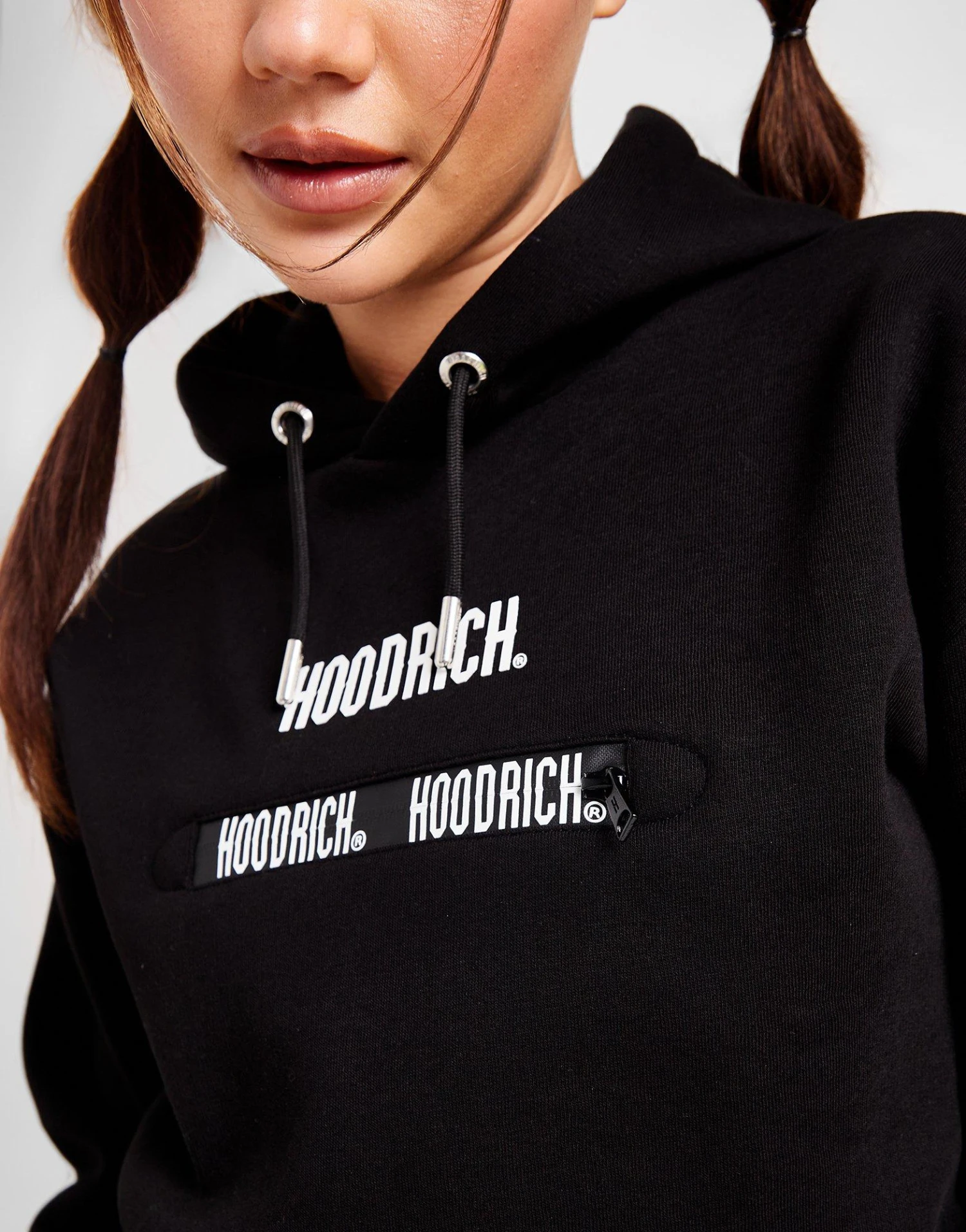 Keep comfy in the streets with this women’s Aspect Crop Hoodie from Hoodrich. In a Black colourway, this standard fit hoodie is cut from soft fleece fabric for total comfort. It features a pullover, adjustable hood for custom coverage, with ribbed cuffs for a secure fit and zip-up pouches to the sleeve and chest for storage. It has a cropped hem for a laidback feel and is finished up with Hoodrich branding to the chest. Machine washable | Our model is 5’8″ and wears a size small.