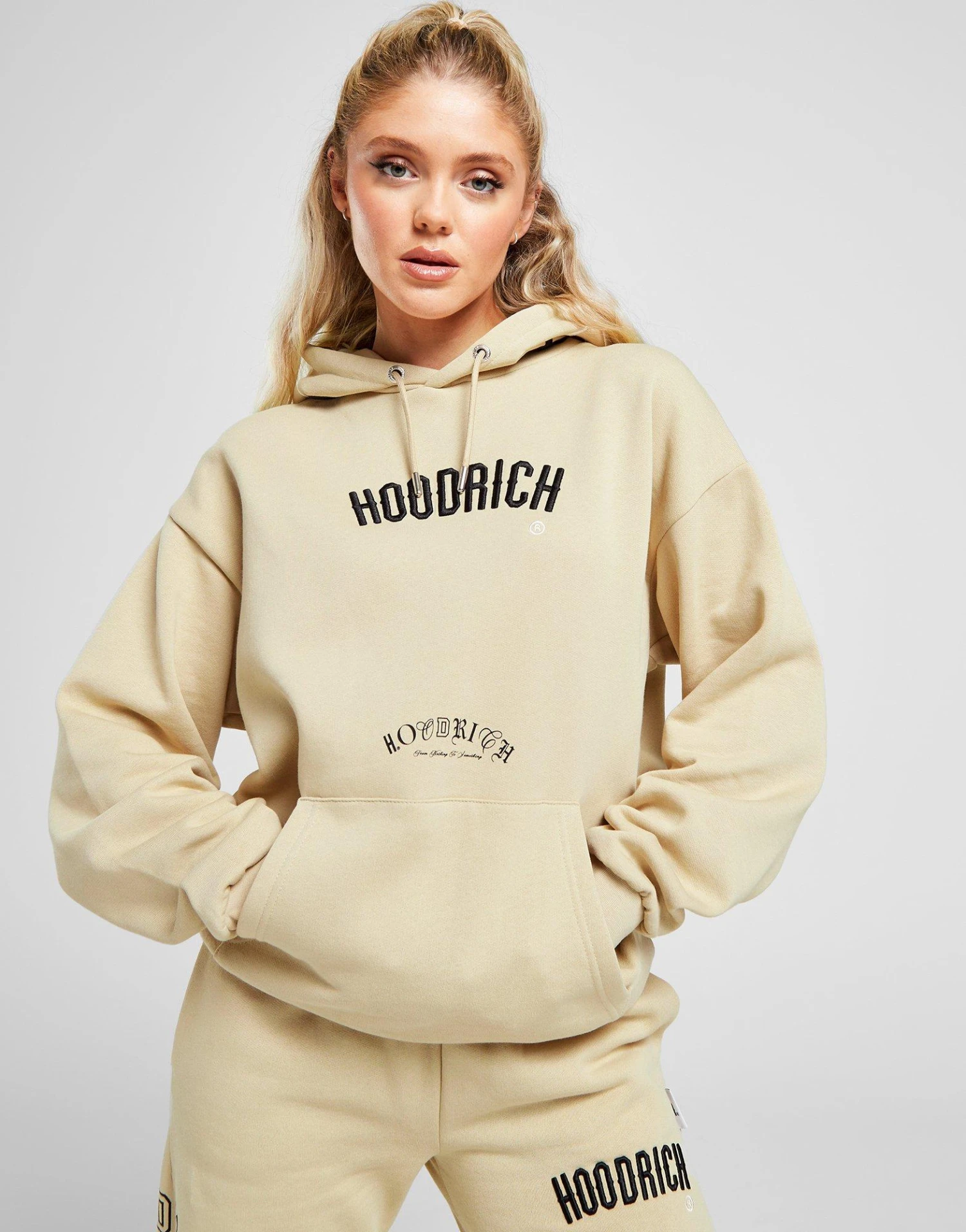 Cop a street-inspired style that keeps you snug in this women’s Calor Hoodie from Hoodrich. In a Beige colourway, this pullover hoodie is made with a super-soft and breathable cotton poly blended fabric for comfy wear. It features an adjustable hood for custom coverage, ribbed trims to elevate the fit, and a kangaroo pocket for keeping your essentials close. With a hidden zippered pocket to the inside of the sleeve, it’s finished with Hoodrich branding to the front and hood. Machine washable. | Our model is 5’8″ and wears a size small.