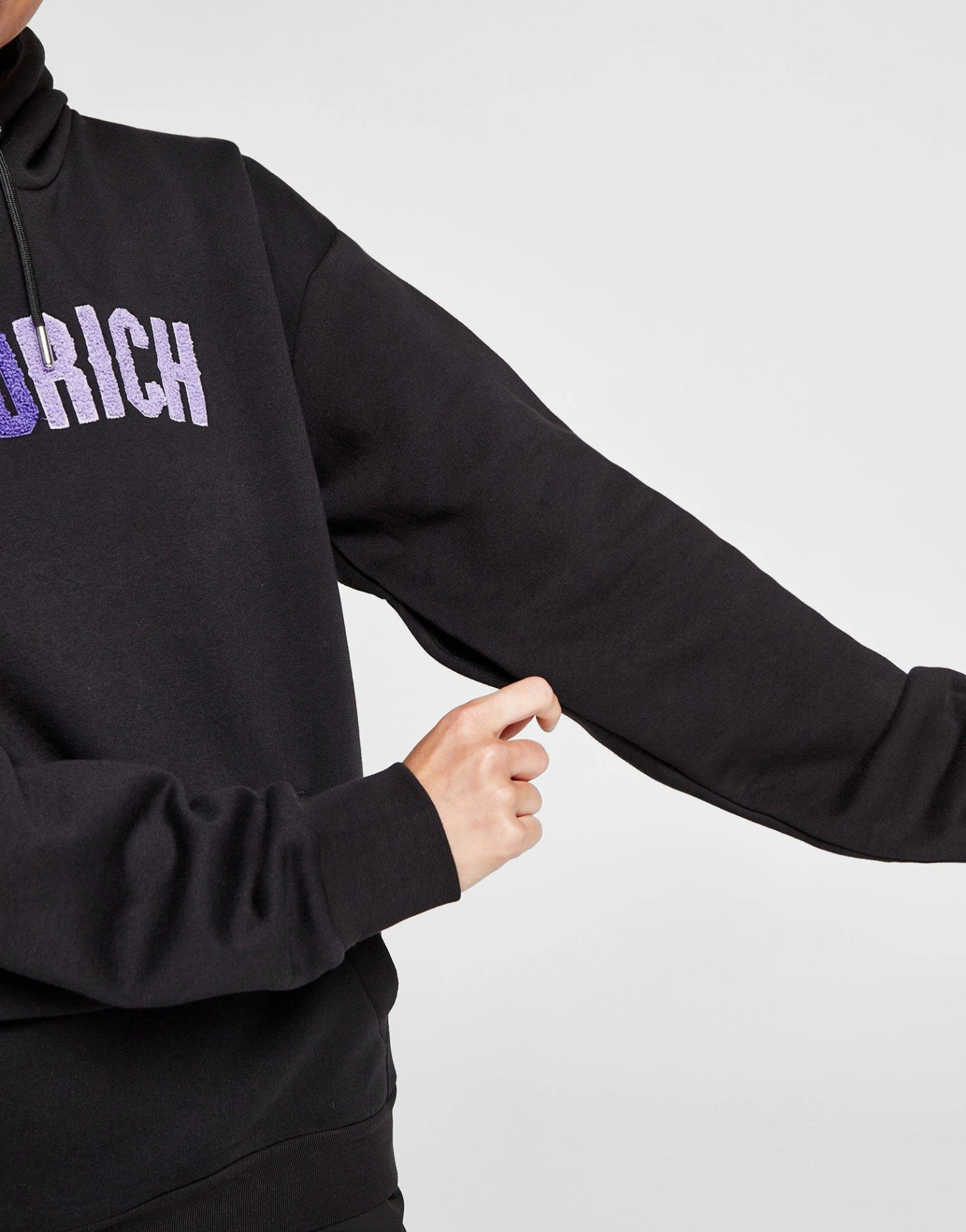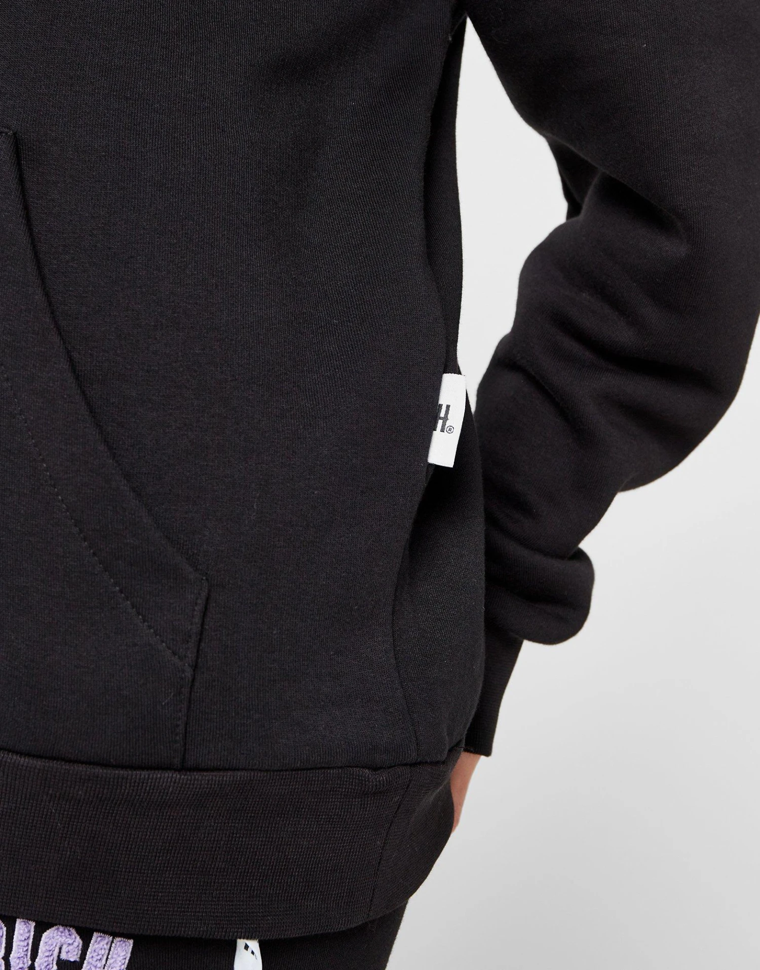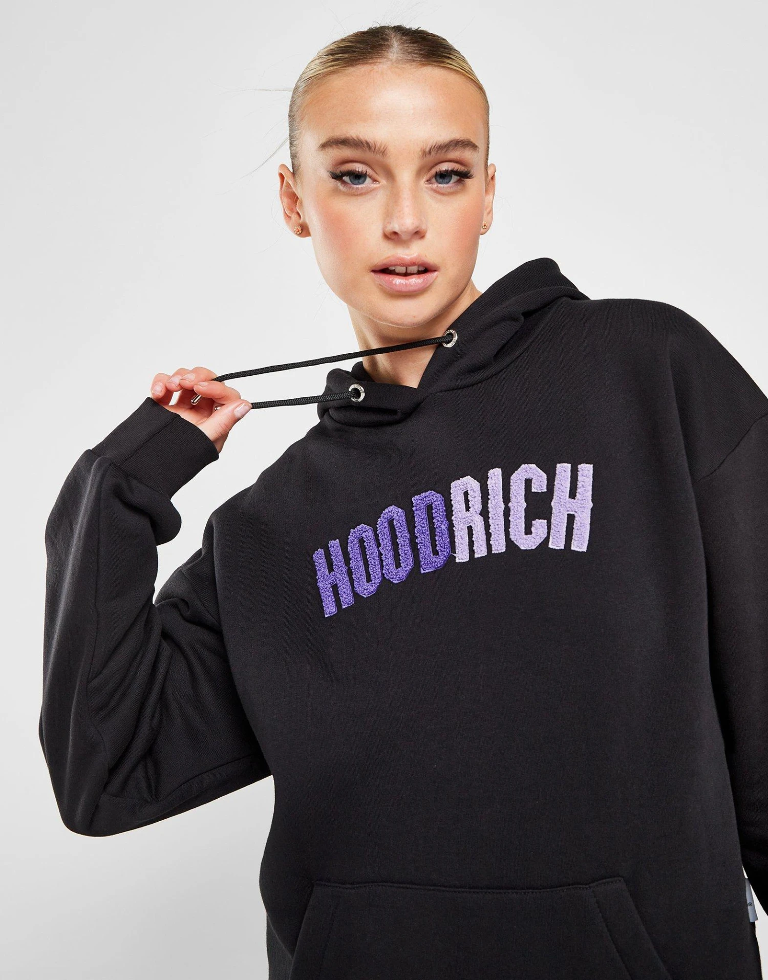 Layer up and relax back with this women’s Kraze Boyfriend Hoodie from Hoodrich. In a Black colourway, this oversized pullover has a drawcord-adjustable hood, dropped shoulders and a kangaroo pocket for a roomy feel, while ribbed trims shape the fit. It’s made from a heavyweight cotton and poly blend for fleecy comfort. Finished off with a zippered pocket on the left sleeve and contrasting Hoodrich branding across the chest. Machine washable. | Our model is 5’9″ and wears a size small.