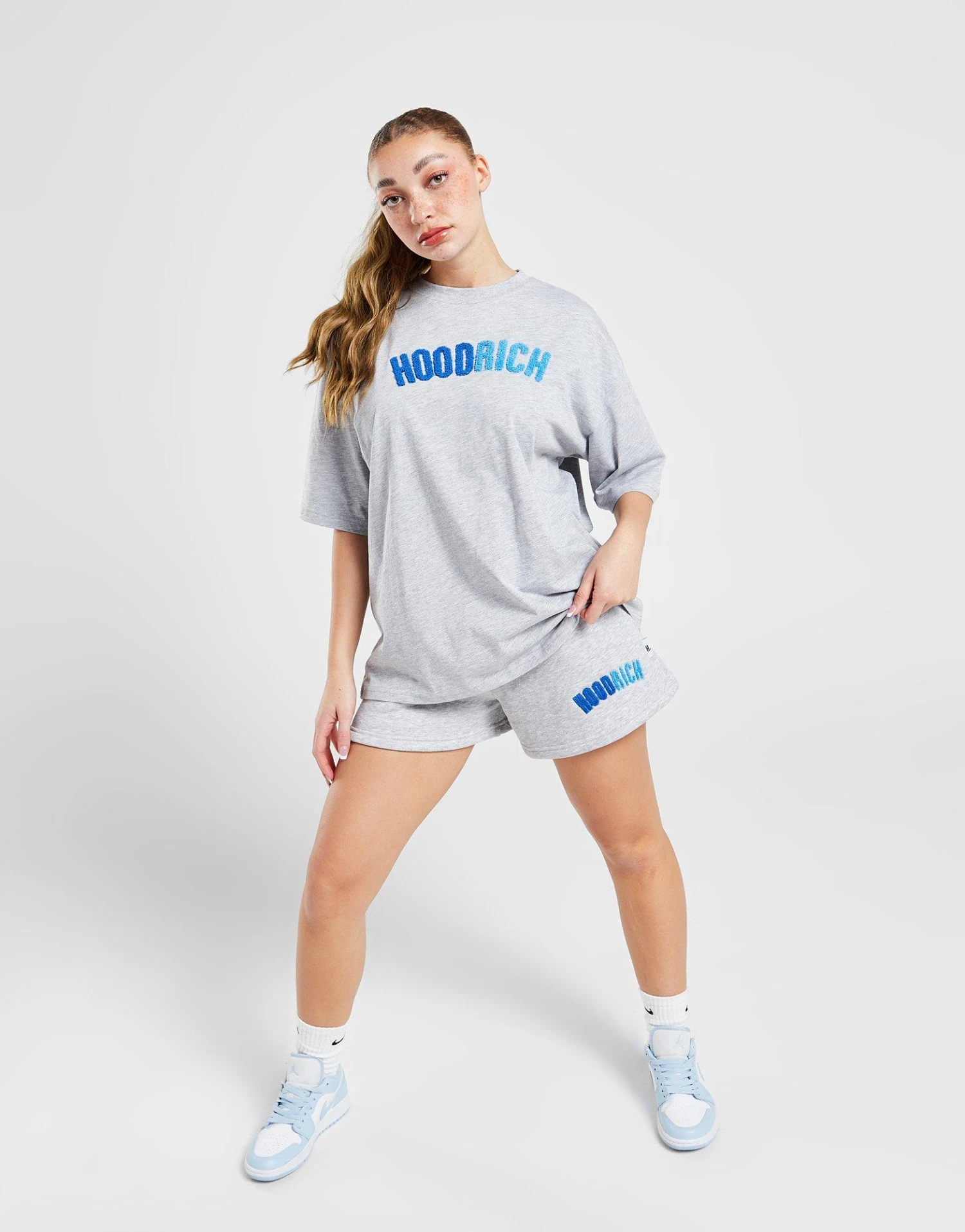 Update your new season ‘fits with this women’s Kraze Boyfriend T-Shirt from Hoodrich. In a Heather Grey colourway, this JD-exclusive tee has a ribbed crew neckline, dropped shoulders and short sleeves for laidback feels. It’s made from soft, durable cotton for lasting comfort. Finished of with a Blue gradient Hoodrich badge to the chest. Machine washable. | Our model is 5’9″ and wears a size small.