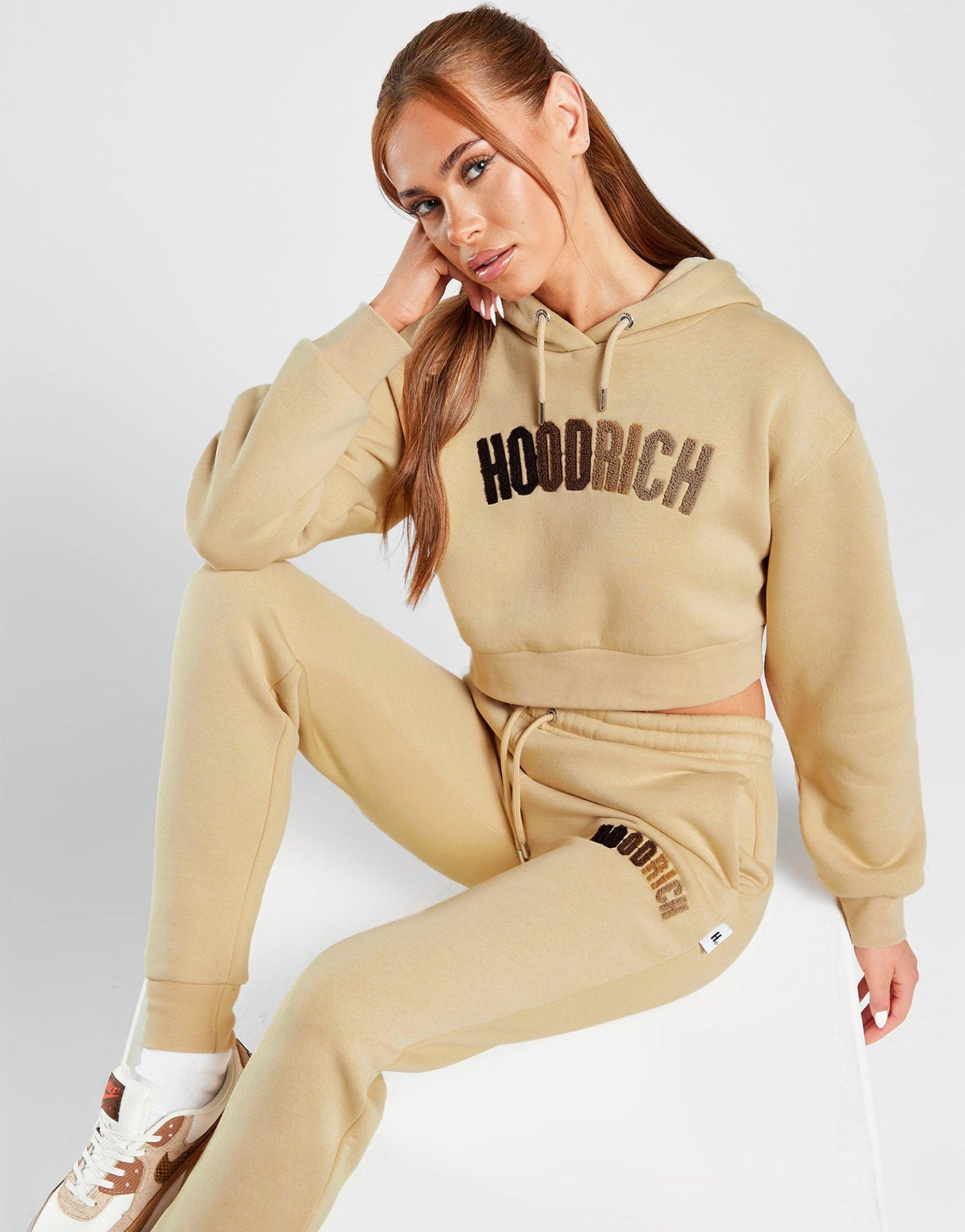 Refresh your off-duty layers with this women’s Kraze Crop Hoodie from Hoodrich. In a Beige colourway, this JD-exclusive hoodie is cut from soft fleece fabric for total comfort. It features an adjustable hood for custom coverage, with ribbed trims for a secure feel and cropped hem for a laidback wear. Finished up with Hoodrich branding to the chest. Machine washable | Our model is 5’7″ and wears a size small.