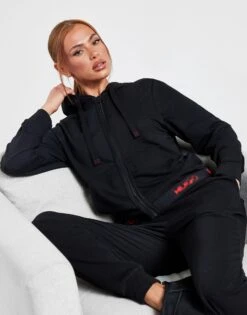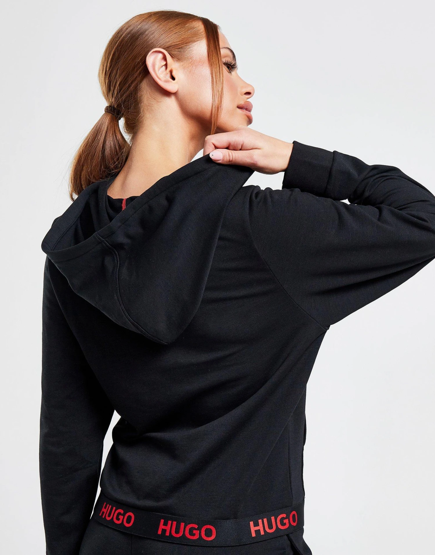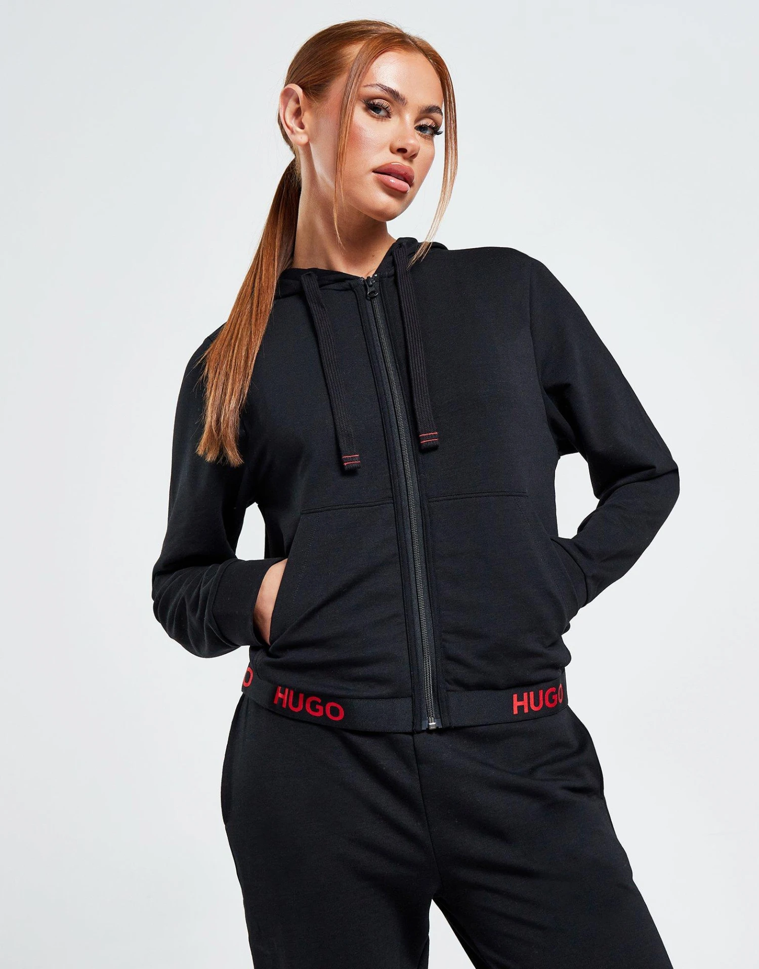 Level up your look on laidback days with this women’s Tape Waist Full Zip Hoodie from HUGO. Coming in a Black colourway, this hoodie is cut from a premium cotton fabric to give you max’ comfort. It features full zip fastening with an adjustable hood for personalised coverage and ribbed trims to optimise the fit. With side pockets for storage, it’s finished with HUGO branding to the waistband. Machine washable. | Our model is 5’7″ and wears a size small.