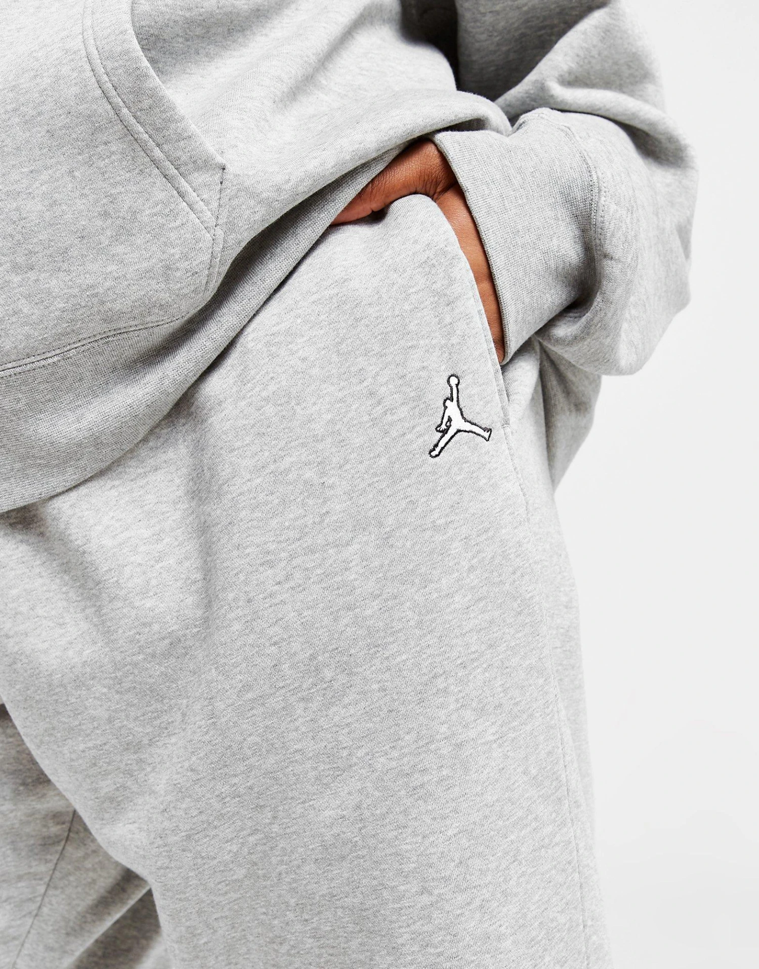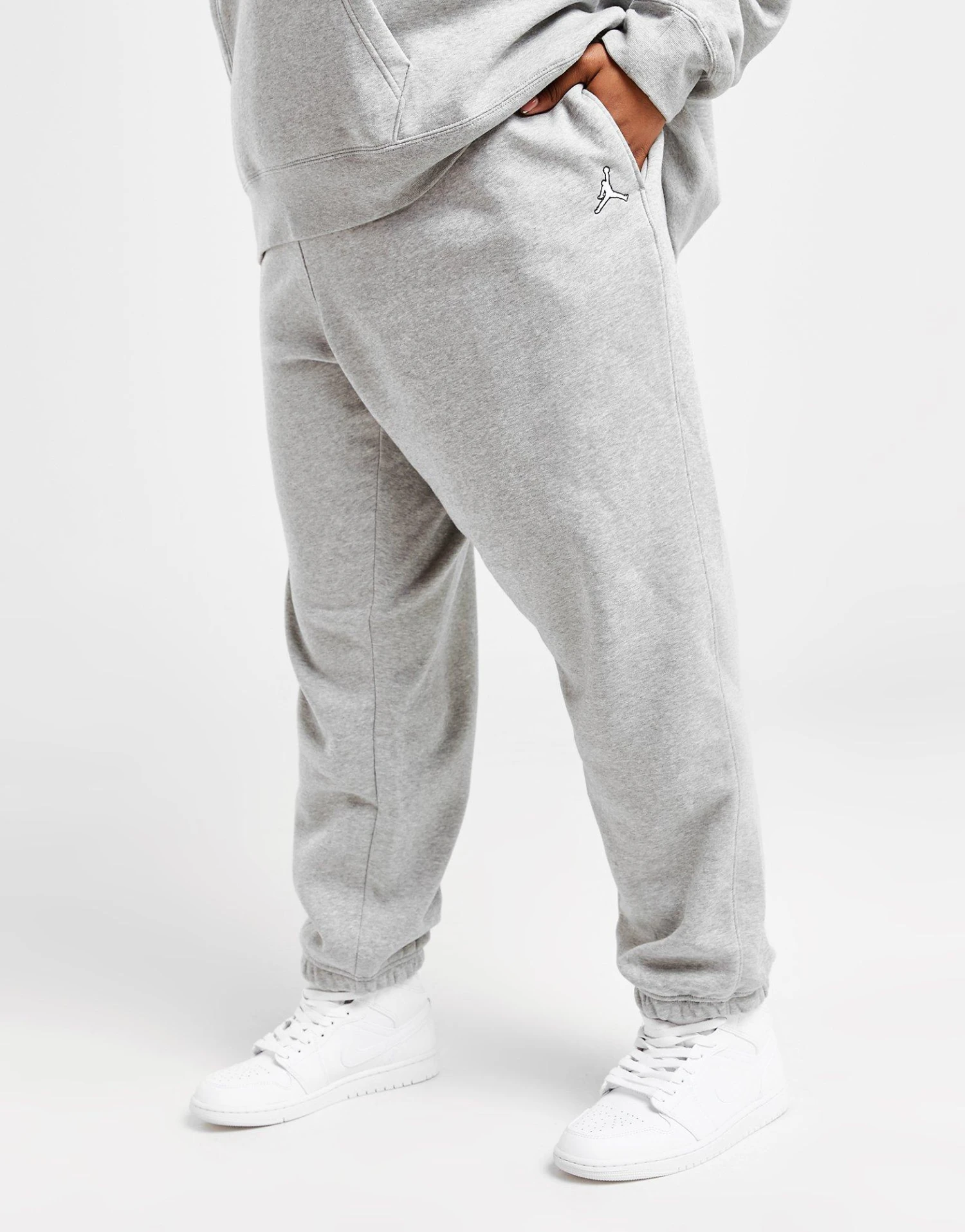 Give your off-duty rotation a refresh with these women’s Plus Size Essential Joggers from Jordan. These joggers come in a Grey colourway and are cut from a blended cotton poly fleece fabric for a super-soft and warm feel. They feature an elastic drawcord waistband so you can personalise the fit and have elastic cuffs to hold the shape. With side pockets to keep your essentials stashed, they’re finished with the Jumpman logo embroidered to the thigh. Machine washable. | Our model is 5’6″ and wears a size XL.