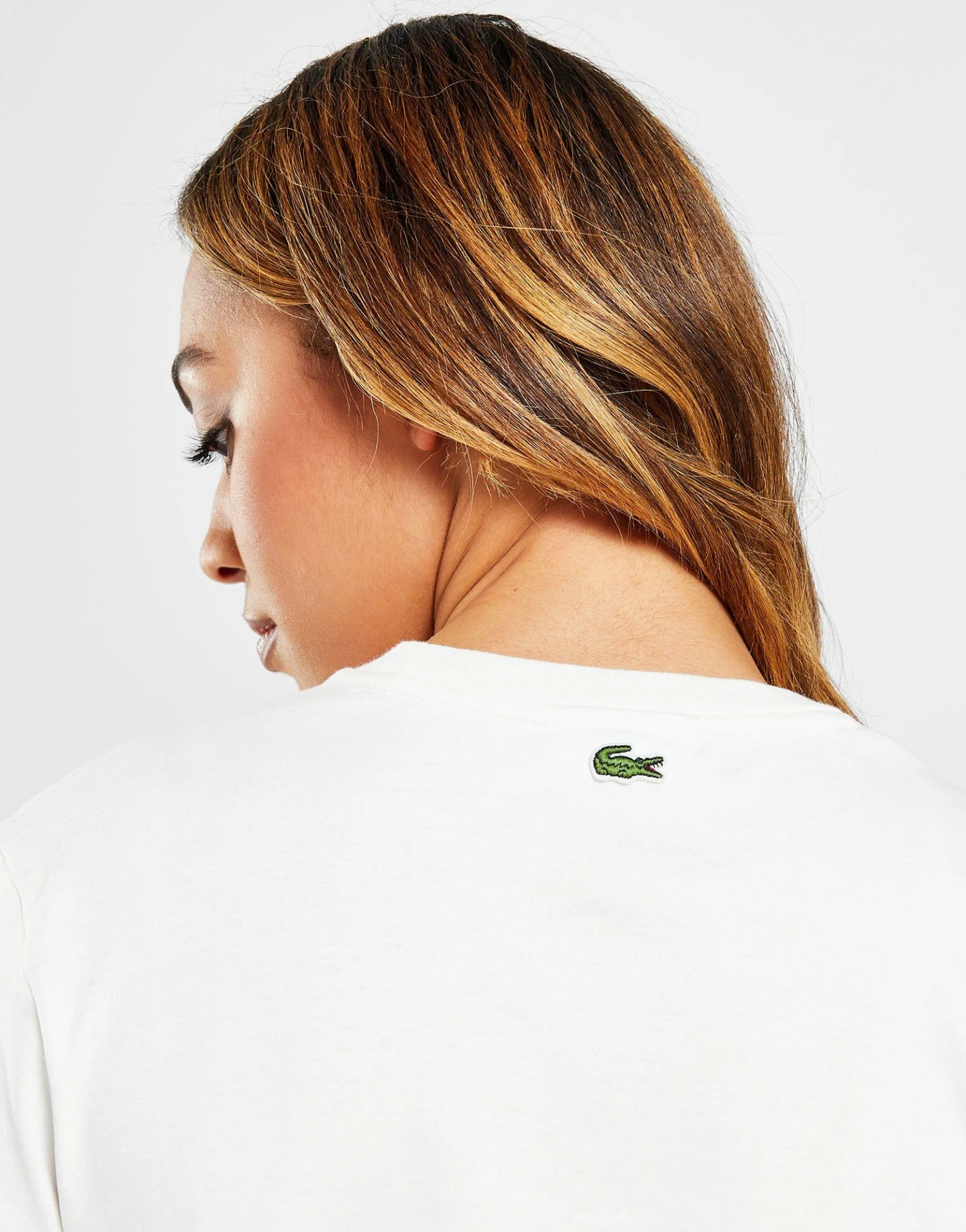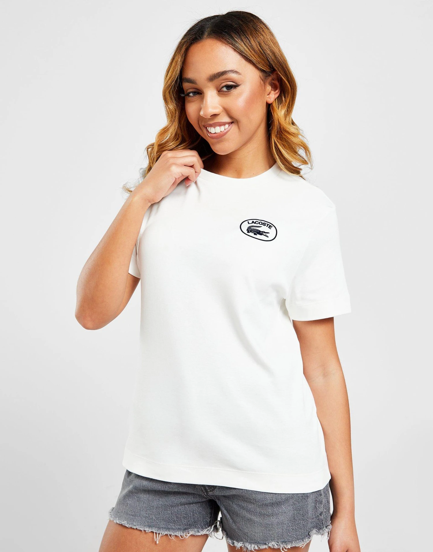 Freshen your ‘fits with this women’s Oval Logo Short Sleeve T-Shirt from Lacoste. Coming in a White colourway, this standard-fit tee is cut from a premium cotton fabric that’s light and soft for next level comfort. It features a crew neckline with short sleeves for a classic look and is finished up with Lacoste branding to the chest. Machine washable. | Our model is 5’8″ and wears a size small.