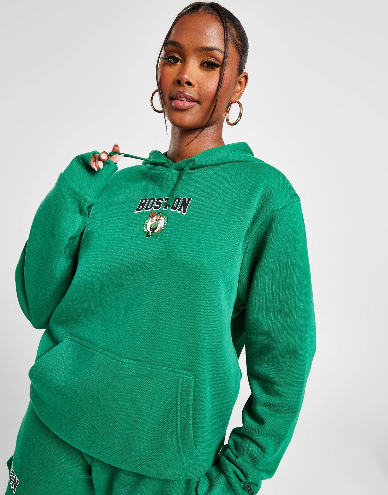 Level up your courtside comfort with this women’s NBA Boston Celtics Graphic Hoodie from New Era. In a Green colourway, this JD-exclusive hoodie is cut from soft fleece fabric for everyday comfort. It features an adjustable pullover hood for custom coverage, with ribbed trims for a snug feel and a kangaroo pouch for easy storage. It comes in a baggy fit for a laidback feel and is finished up with graphic Celtics branding to the chest and back, with a New Era logo to the sleeve. Machine washable | Our model is 5’9″ and wears a size small.