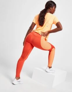 Upgrade your training gear with these women’s Running Air Fast Panel Tights from Nike. In a Mantra Orange colourway, these tights are made with smooth, stretchy poly fabric for lasting wear. Equipped with sweat-wicking Dri-FIT tech and breathable mesh panels for cool comfort, these tight-fit leggings have a mid-rise elasticated waistband for a secure feel. With multiple pockets to stash the essentials when you head out, they’re finished up with reflective Nike branding on the waistband. Machine washable. | Our model is 5’7″ and wears a size small.