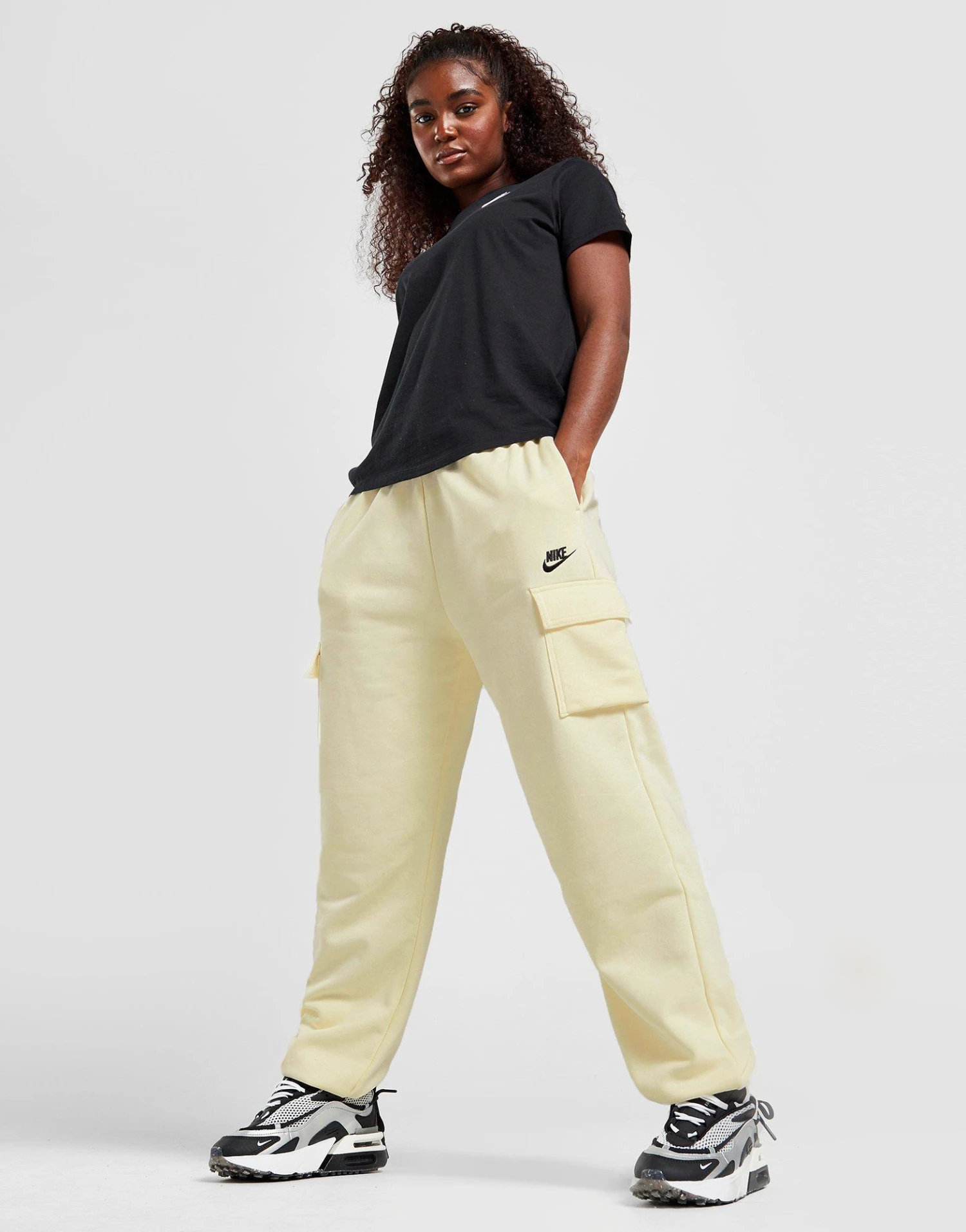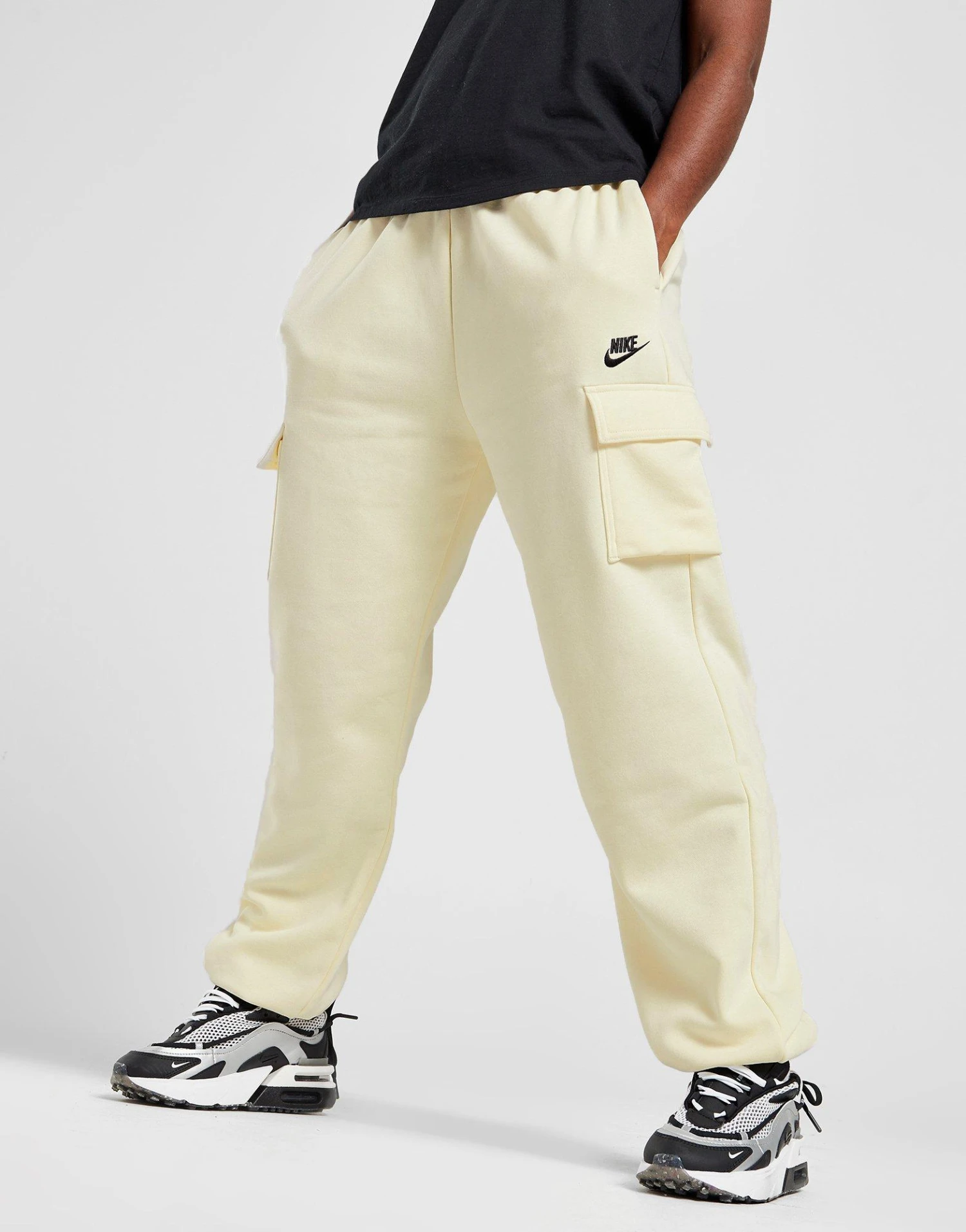 From sofa days to laidback links, stay cosy in these women’s Club Fleece Cargo Joggers from Nike. Comin’ in a Coconut Milk colourway, these standard-fit sweats are made with ultra-soft, brushed fleece for supreme comfort. They feature an elasticated waistband with a drawstring to adjust the fit, and stretchy ankle cuffs to secure the shape. They have side and cargo pockets for street-inspired storage, and are finished up with signature Nike branding embroidered to the thigh. Machine washable. | Our model is 5’7″ and wears a size small.