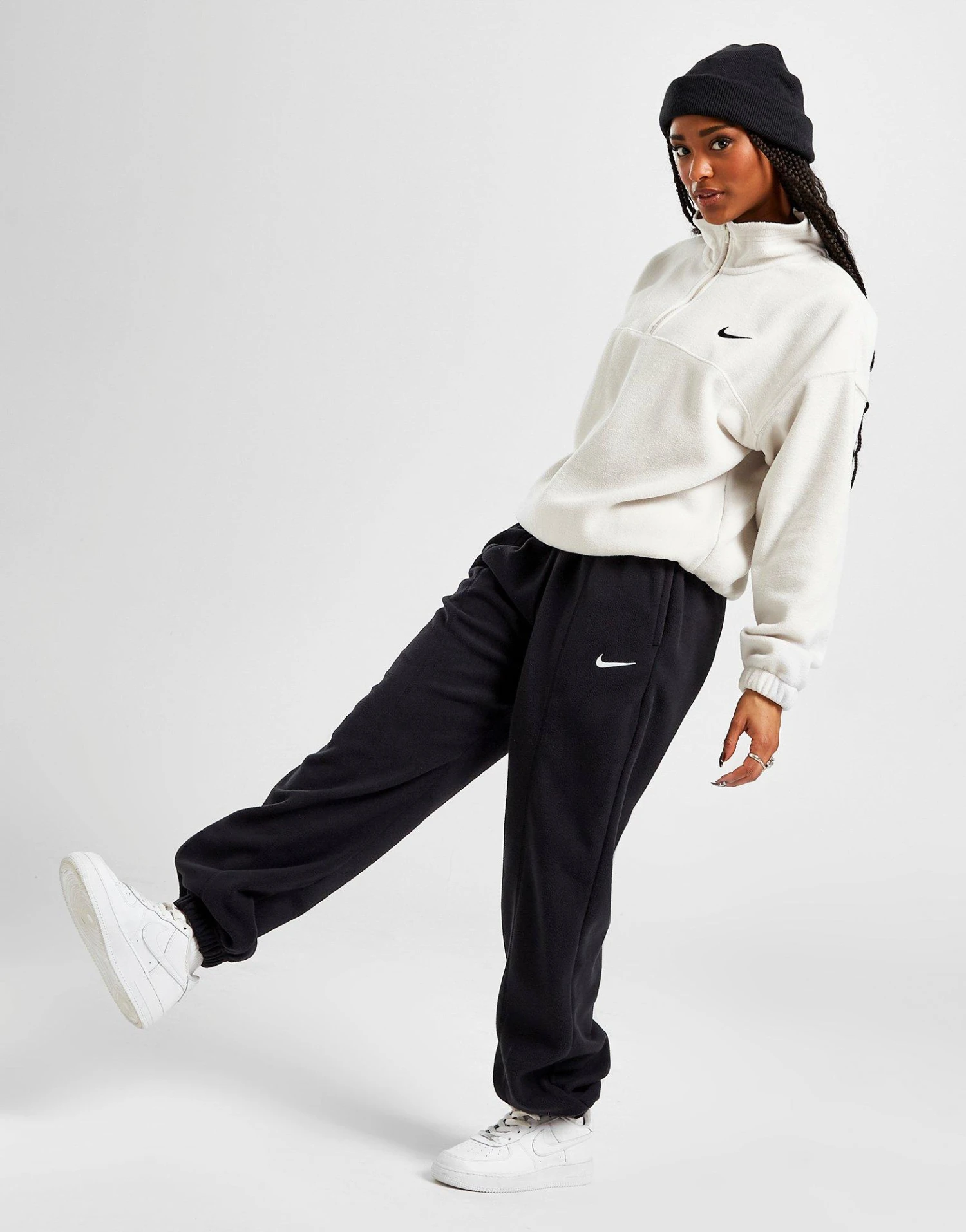 Keep it chill with these women’s Como Fleece Joggers from Nike. In a Black colourway, these baggy fitting joggers are cut from soft polyester fleece for an ultra-cosy wear. They feature an elasticated, drawcord waistband for a relaxed feel, with ribbed cuffs for showing off your creps and side pockets for your essentials. Finished up with a signature Swoosh to the leg. Machine washable | Our model is 5’7″ and wears a size small.