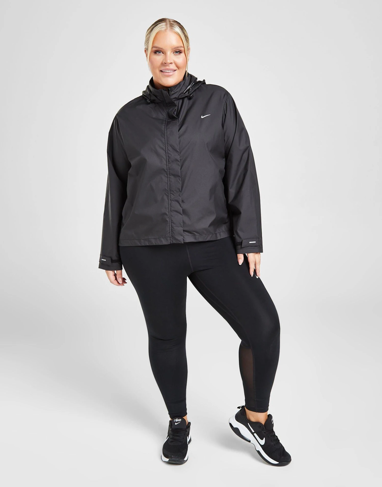 Be prepped for poor conditions with this women’s Plus Size Lightweight Jacket from Nike. In a Black colourway, this jacket is cut from a smooth yet durable poly fabric that has a water-repellent finish for protection against downpours. It features full zip fastening with storm flap and a stowable hood for custom coverage. With hook-and-loop closures at the cuffs for an adjustable fit, it’s finished up with the Swoosh to the chest. Machine washable.