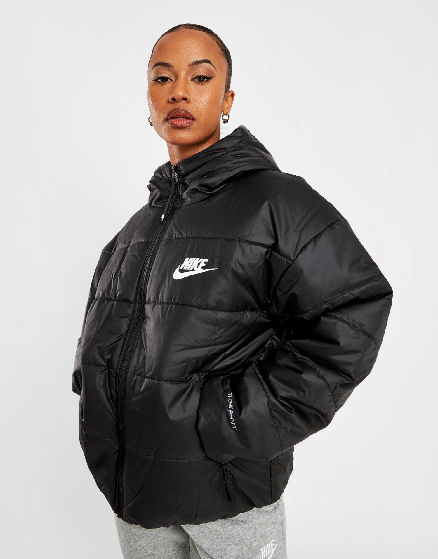 The Nike Sportswear Therma-FIT Jacket upgrades a favourite Nike layer. Its Repel weather-resistant fabric and insulation are both made from recycled polyester derived from plastic bottles. A scuba hood design and easy-to-layer fit make it a go-to cold-weather staple.