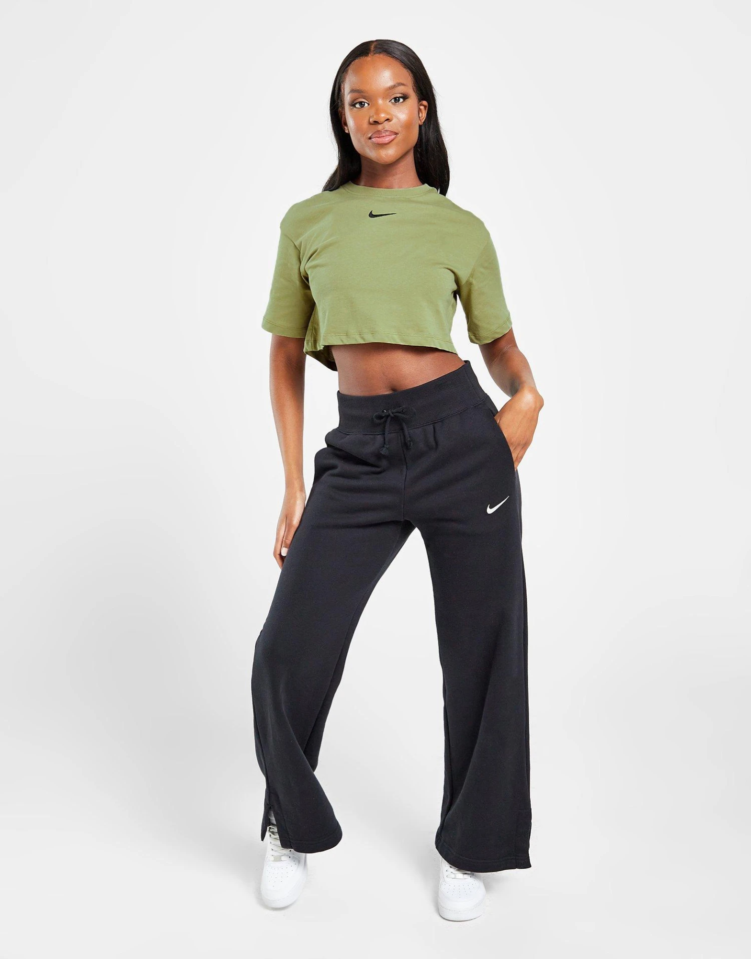 Rep some statement Swoosh this Summer with this women’s Swoosh Crop Top from Nike. In a Neutral Olive colourway, this standard fit tee is cut from soft cotton fabric for total comfort. It features short sleeves with a ribbed crew neckline and has a cropped hem for a laidback feel. Finished up wth a Swoosh to the chest. Machine washable | Our model is 5’9″ and wears a size small.