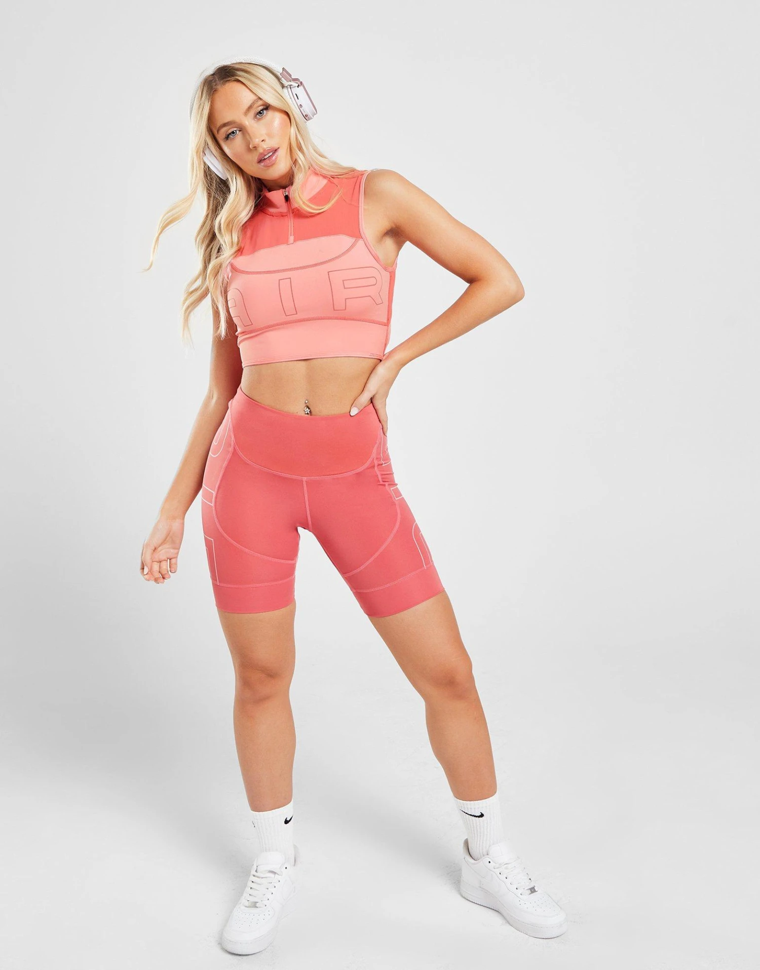 Move with ease in this women’s Training Air Crop Tank Top from Nike. In a Coral Chalk colourway, this tight-fit top is made from stretchy poly fabric with breathable mesh panels. It has Dri-FIT tech to wick away sweat, and features a cropped cut with a quarter zip fastening. With cut out detailing to the back, this workout top is finished with Nike Air branding. Machine washable. | Our model is 5’5″ and wears a size small.