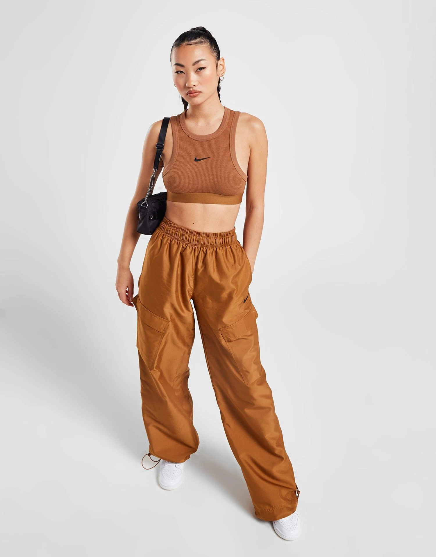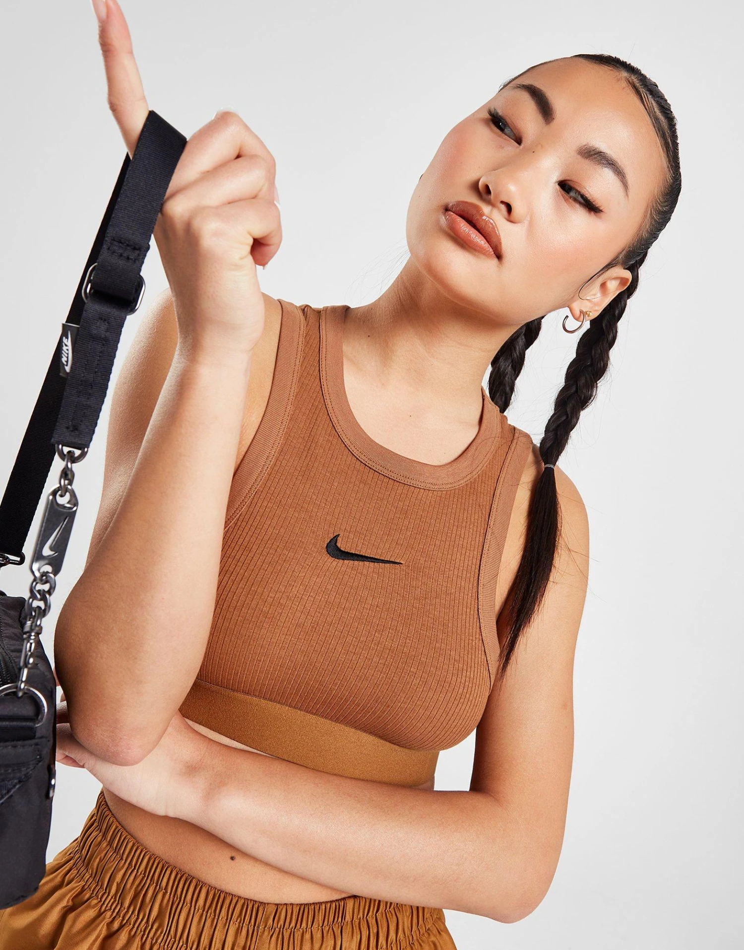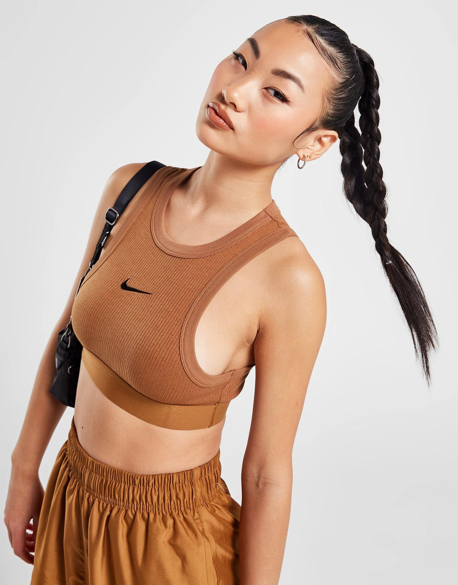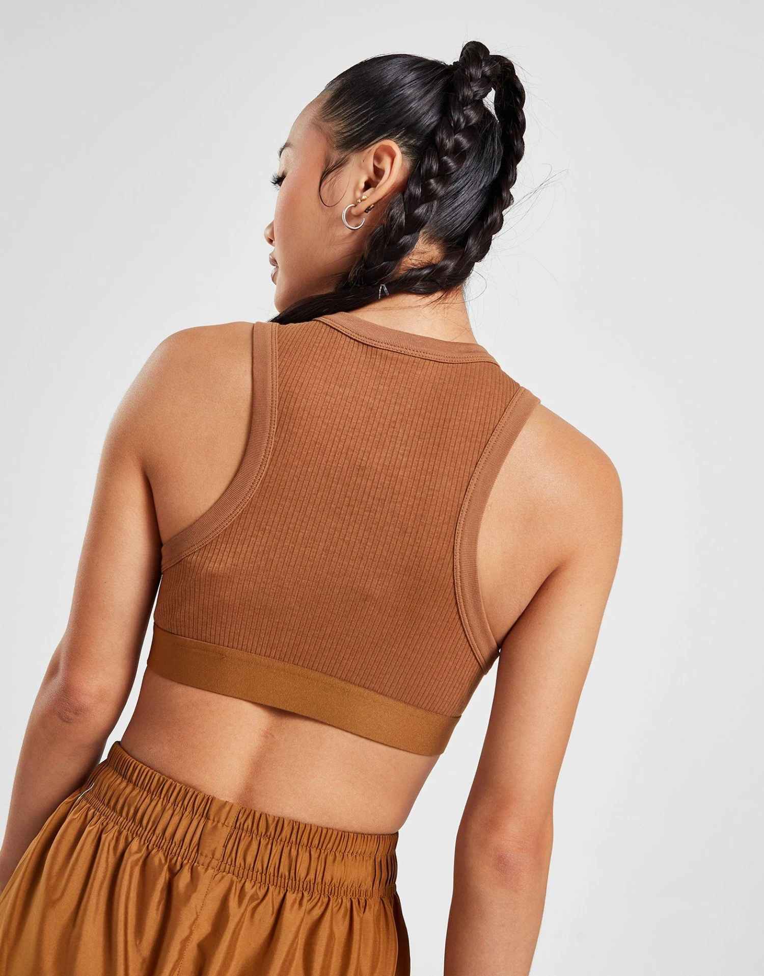 Grab a sporty look and go with this women’s Trend Crop Ribbed Tank Top from Nike. In an Ale Brown colourway, this cropped-fit staple is made from stretchy cotton and poly fabric, with a ribbed texture throughout for a comfy look and feel. It features thick binding and an elasticated underband for lasting support and structure. Finished off with an embroidered Swoosh to the chest. Machine washable. | Our model is 5’5.5″ and wears a size small.