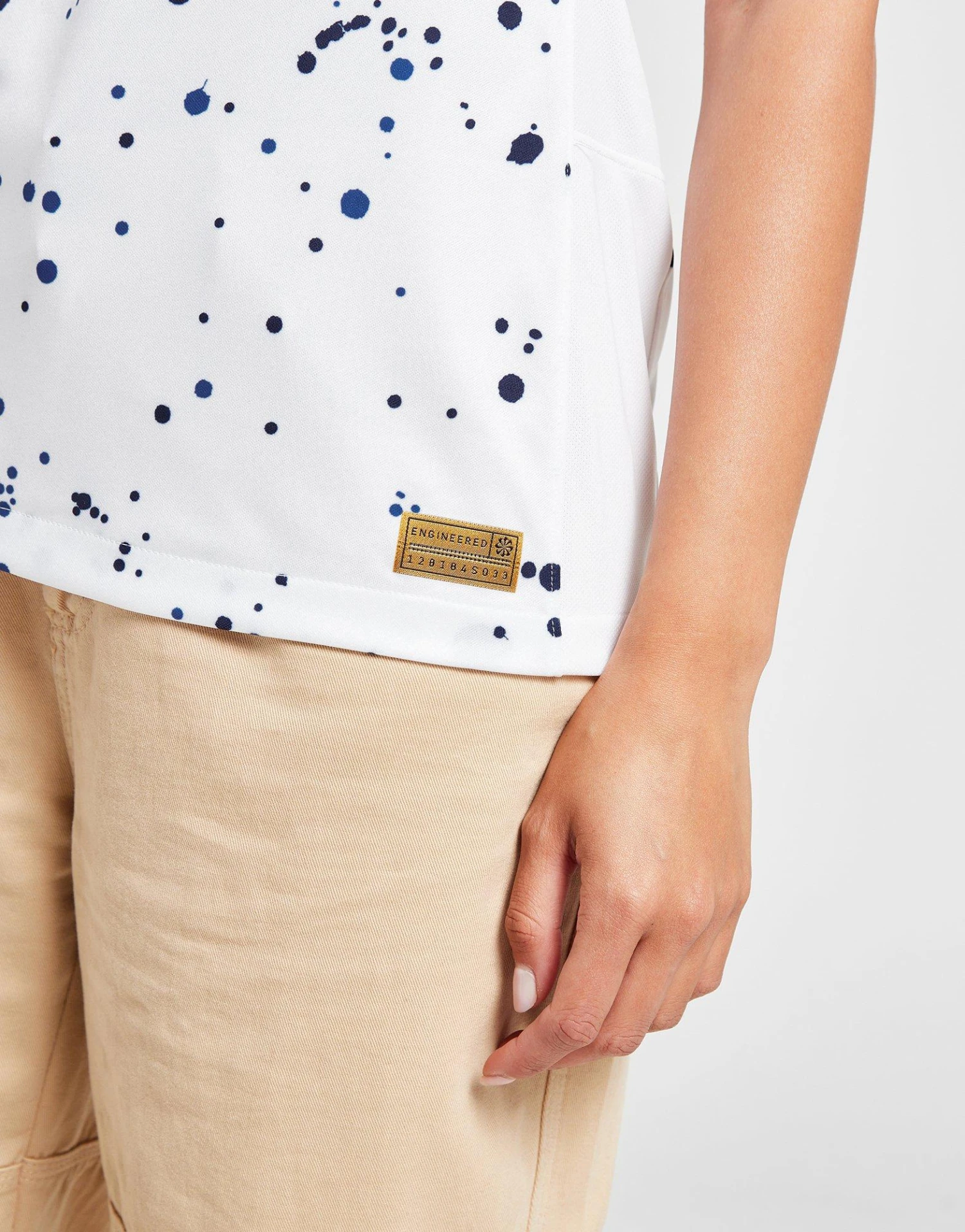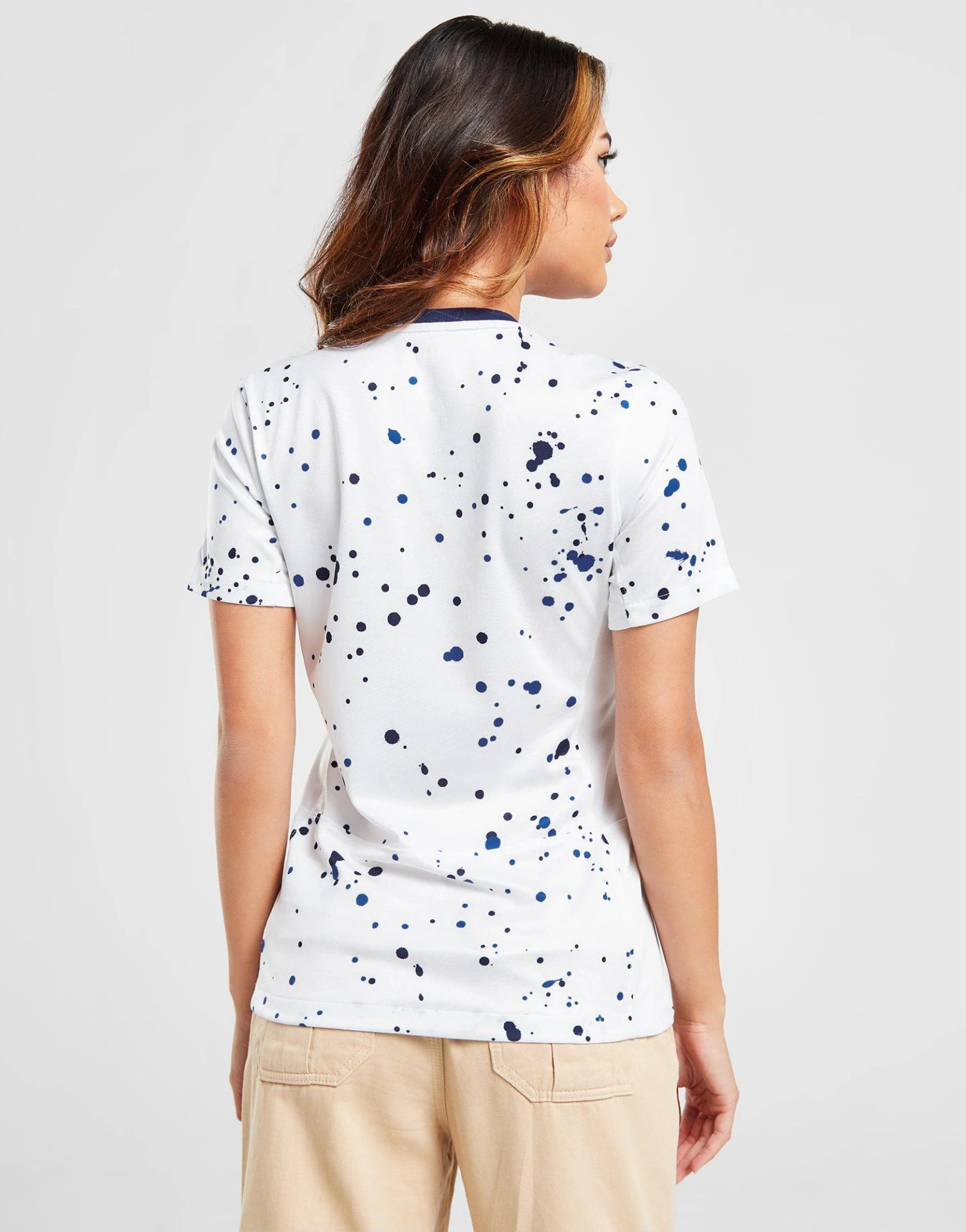 Get behind your side with this women’s USA Women 2023 Home Shirt from Nike. In a White and Loyal Blue colourway with a paint-splatter design, this shirt is cut from light, breathable polyester fabric for cool comfort. It features short sleeves with a ribbed crew neckline and is equipped with sweat-wicking Dri-FIT tech to keep you dry and fresh. Finished up with a Nike Swoosh and USA crest to the chest. Machine washable.
