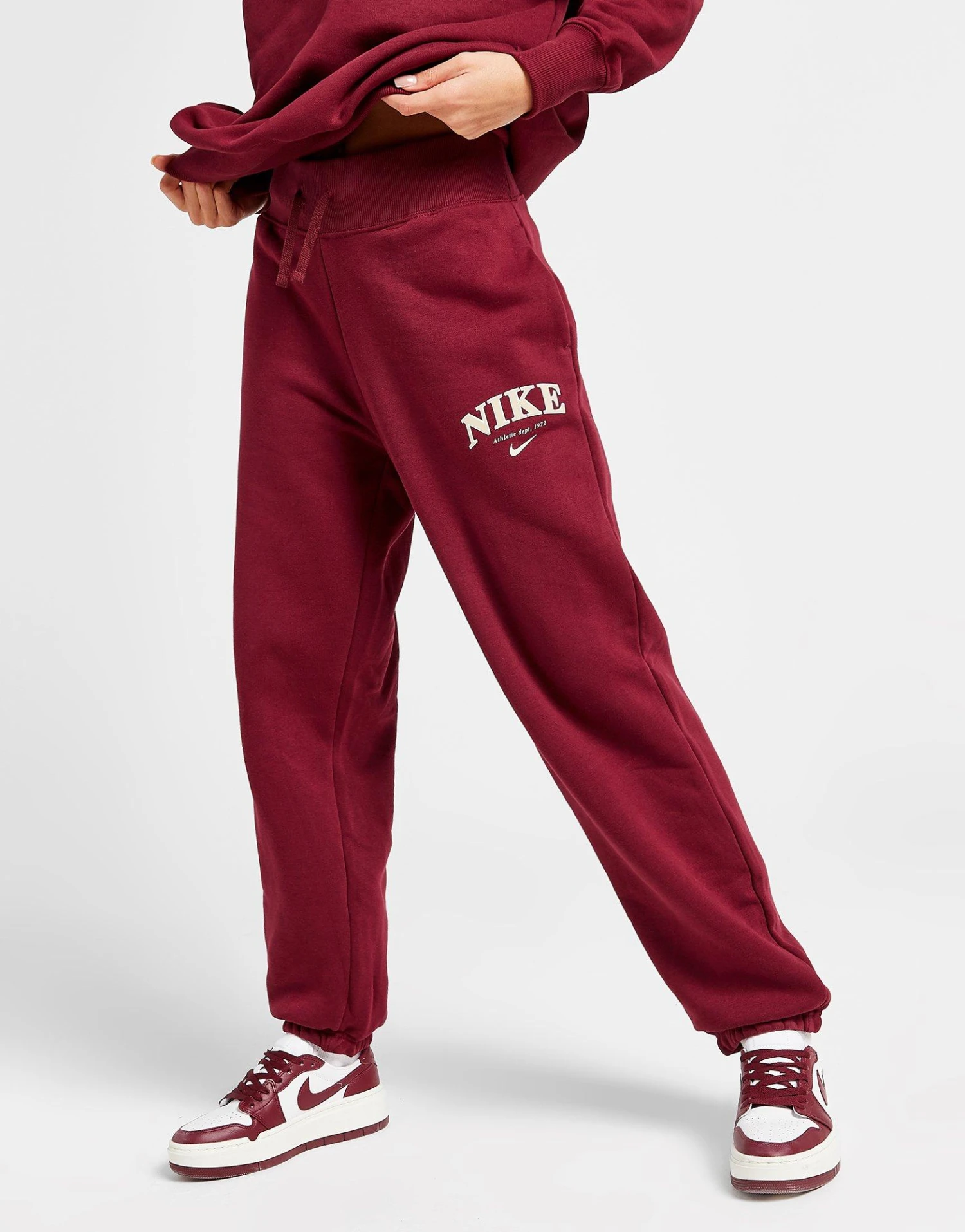 Upgrade your off-duty style with these women’s Varsity Joggers from Nike. Exclusive to JD, these oversized joggers come in a Dark Beetroot colourway and are cut from a super-soft and snug cotton poly blended fabric for max’ comfort. They feature an elastic waistband for relaxed wear and ribbed ankle cuffs so you can showcase your sneaks. With side pockets for storage, they’re signed off with Nike branding to the thigh. Machine washable. | Our model is 5’6″ and wears a size small.