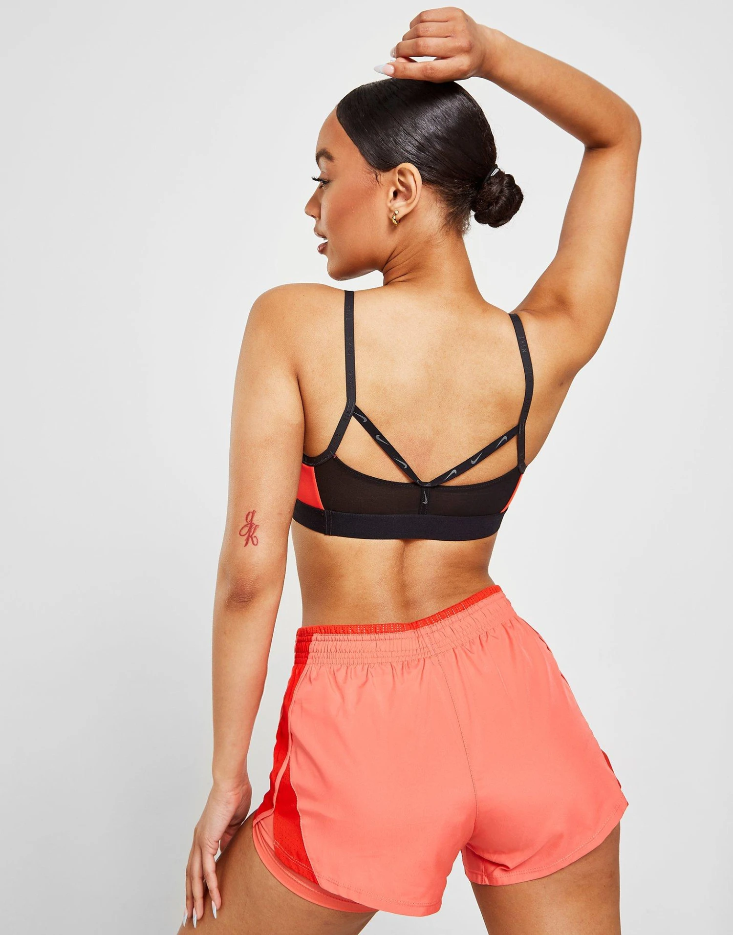 Level up ya’ workout wear with this women’s Training Indy Logo Bra from Nike. In a Chile Red colourway with Black accents, this tight-fit sports bra is made with smooth, stretchy poly fabric for essential comfort when you train. It offers light-support, and is built with Dri-FIT tech to wick away sweat and keep you cool. It features a V-neckline and thin, adjustable straps for a premium fit, with removable pads for easy adjustment. This sports bra is signed off with Swoosh taping at the front and to the back straps for a subtle, sporty look. Machine washable.