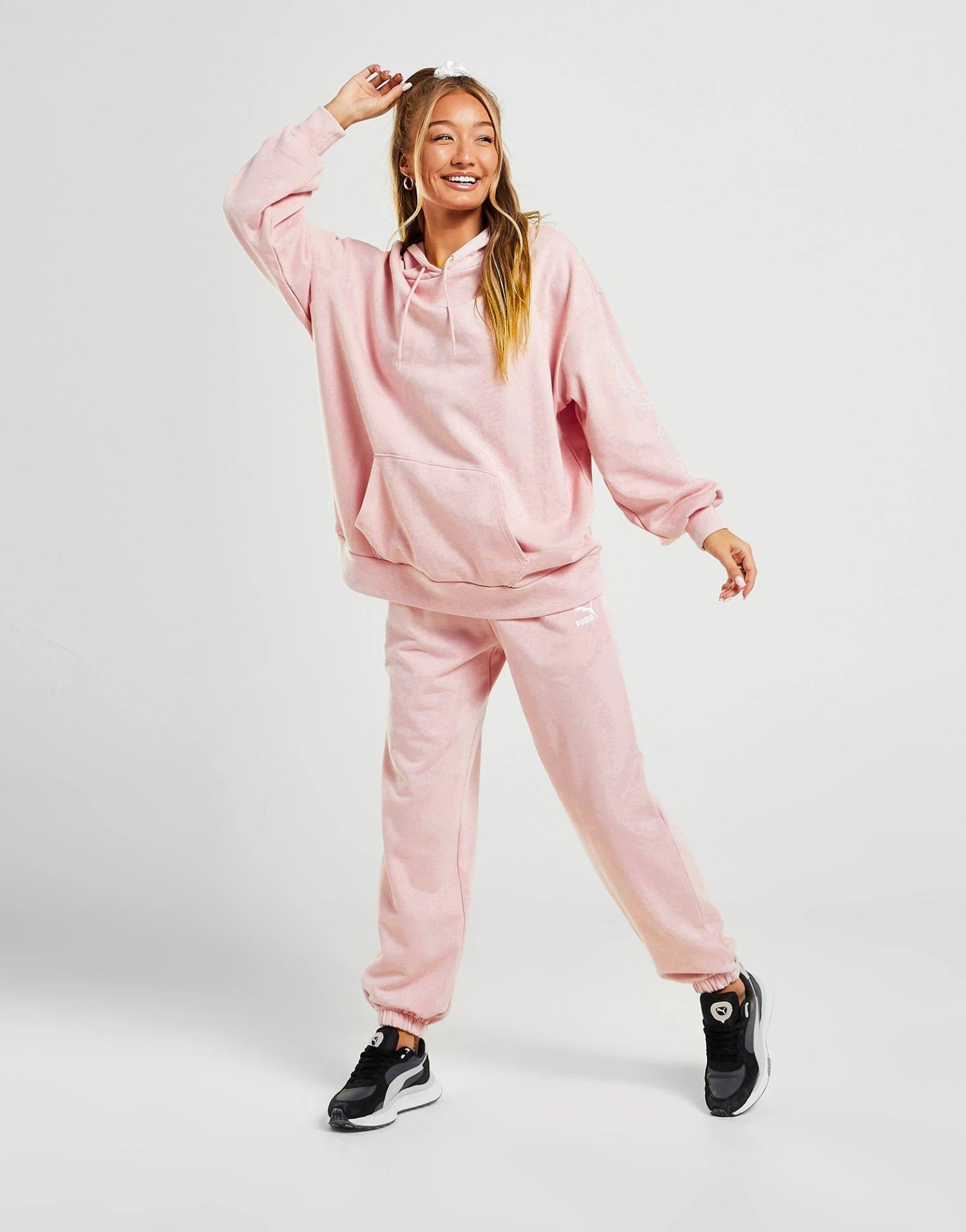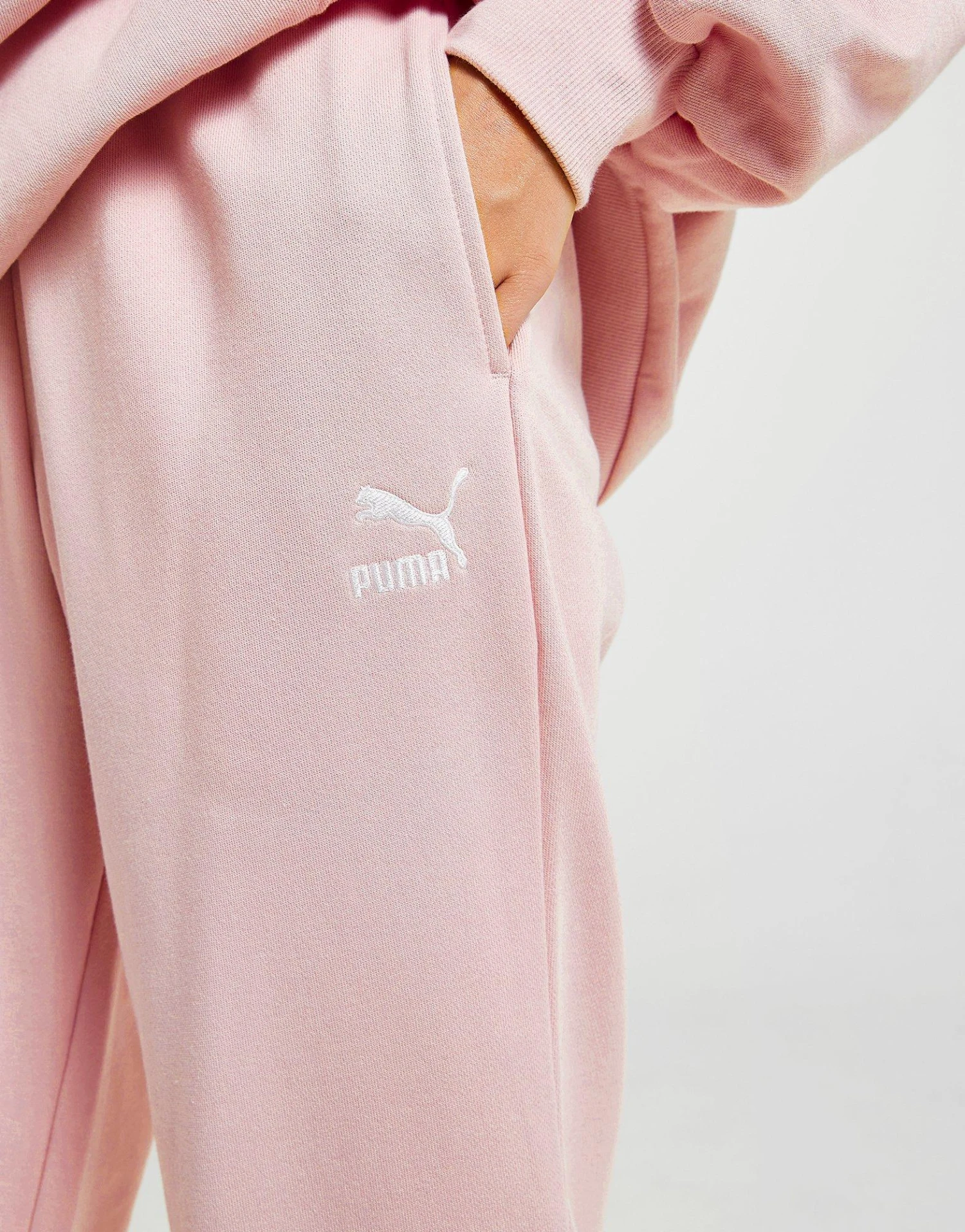 On chilled days, keep comfy in these women’s Classics Relaxed Joggers from PUMA. In a Light Pink colourway, these loose-fit pants are made from super soft cotton fleece for cosy feels. They feature tapered cuffs and an elasticated waistband with an adjustable draw cord for a custom fit. With side pockets for your essentials, these relaxed style joggers are finished up with signature PUMA branding printed to the thigh. Machine washable. | Our model is 5’8″ and wears a size small.