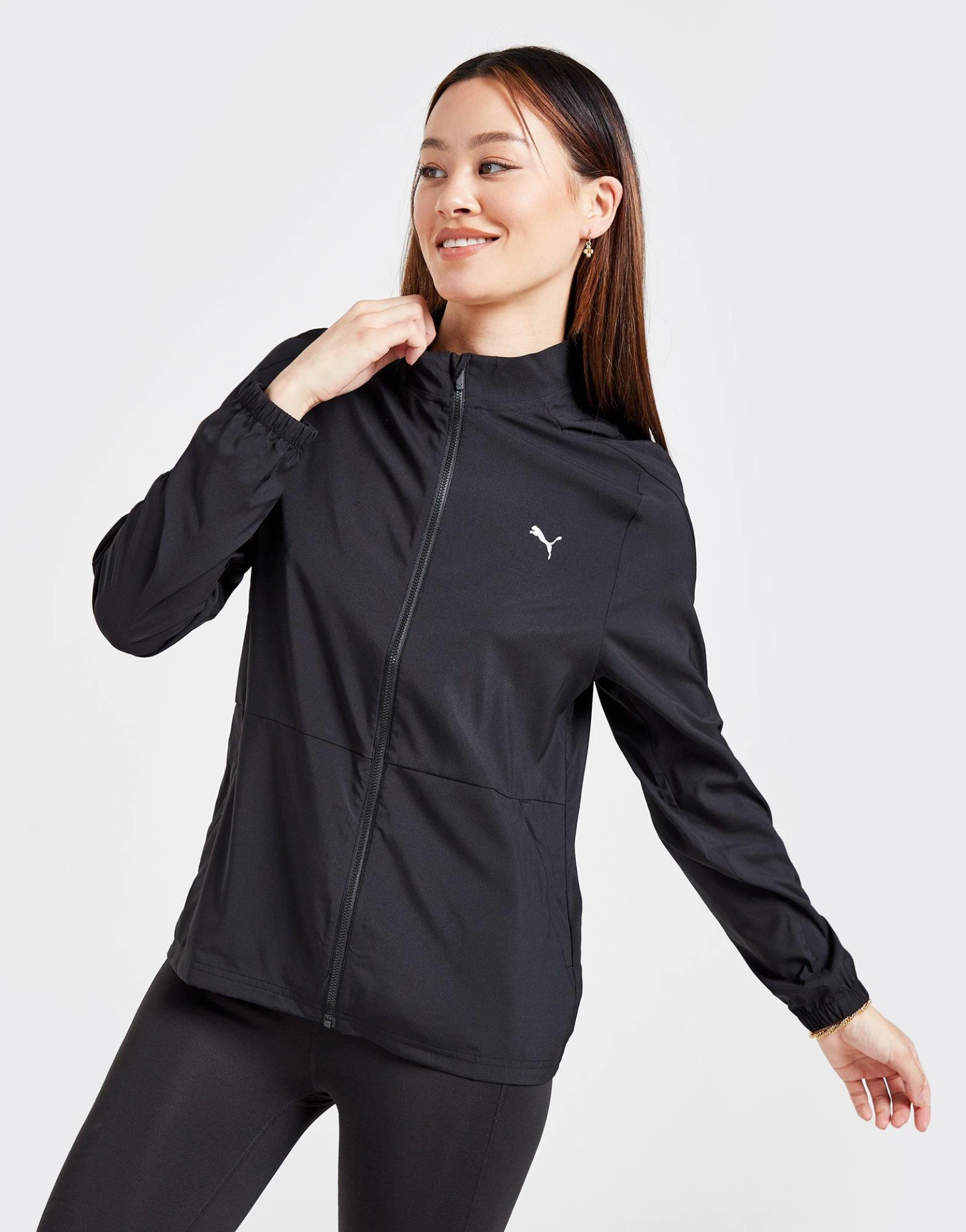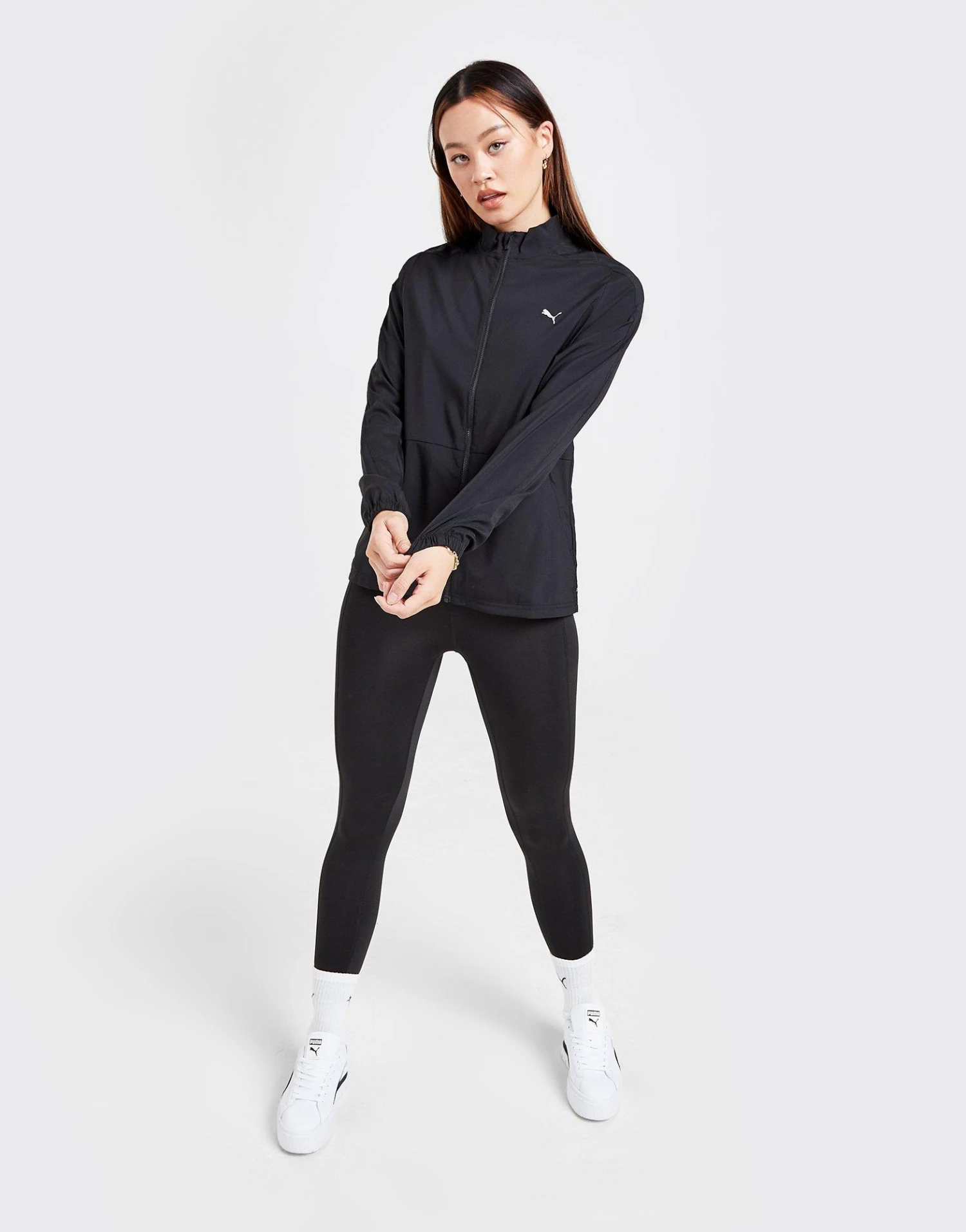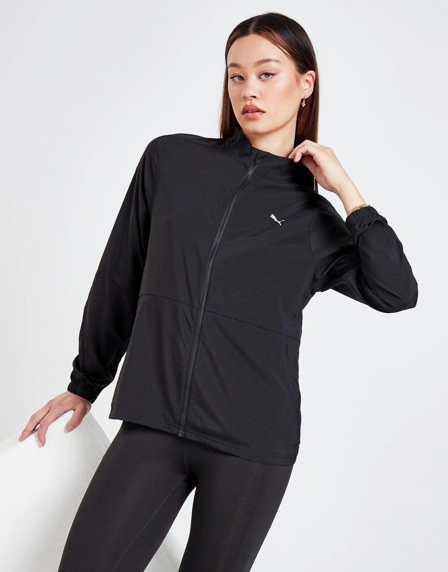 Keep covered as you train with this women’s Fave Woven Jacket from PUMA. In a Black colourway, this jacket is made from light, durable polyester fabric for breathable comfort during your workout. It features a full-zip fastening and stand-up collar for custom coverage, ribbed cuffs to secure the fit and zip-up side pockets for your essentials. It comes equipped with dryCELL sweat-wicking tech to keep you dry and fresh and is finished up with signature PUMA branding to the chest. Machine washable. | Our model is 5’10” and wears a size small.