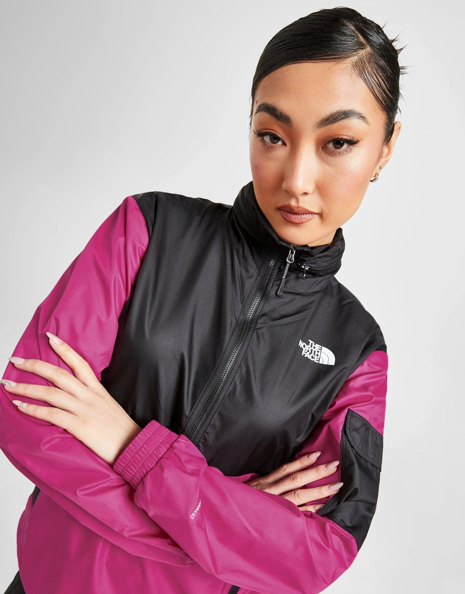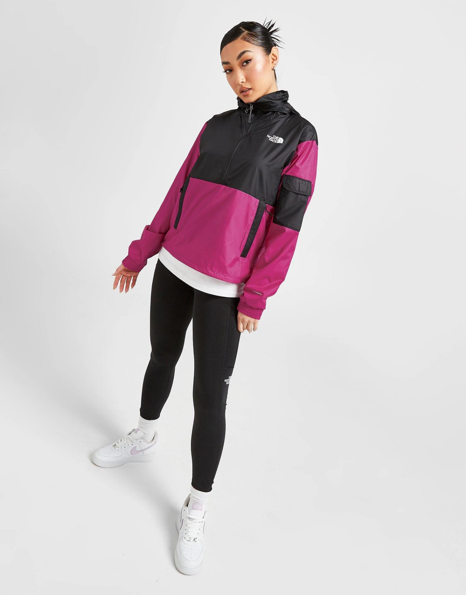 Exclusive to JD. Sharpen up your peak-inspired style with this women’s Cargo Lighweight Jacket from The North Face. Inspired by the brand’s OG designs, this half zip pullover coat has a Fuschia Pink and TNF Black colour block print. It’s made from breathable poly fabric, with signature Windwall tech built in to block out breezy conditions. Feature elasticated cuffs and a stowaway hood for custom coverage, this jacket is finished up with a zippered utility pockets and Simple Dome badges. Machine washable. | Our model is 5’8″ and wears a size small.