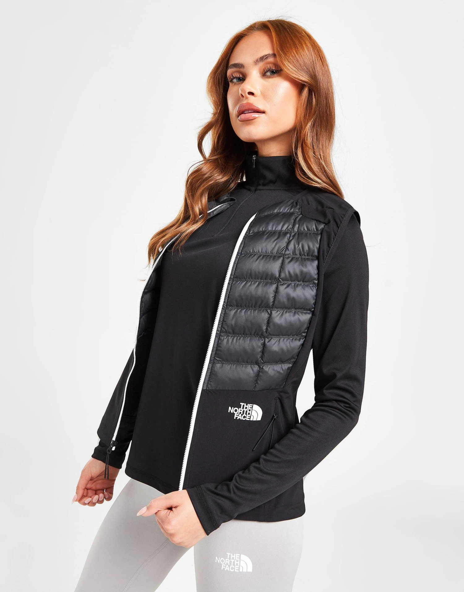 Lock your heat in on training days with this women’s Lab Hybrid Thermoball Vest Jacket from The North Face. In a Black colourway, this peak-inspired gilet is made from stretchy woven poly fabric with a Non-PFC Durable Water-Repellent coating for a dry wear. It has a lightweight synthetic Thermoball padding to the front and back for added warmth, and features a full zip front for custom coverage. With zippered pockets to the front for your essentials, this jacket is finished off with contrasting Simple Dome branding. Machine washable. | Our model is 5’7″ and wears a size small.