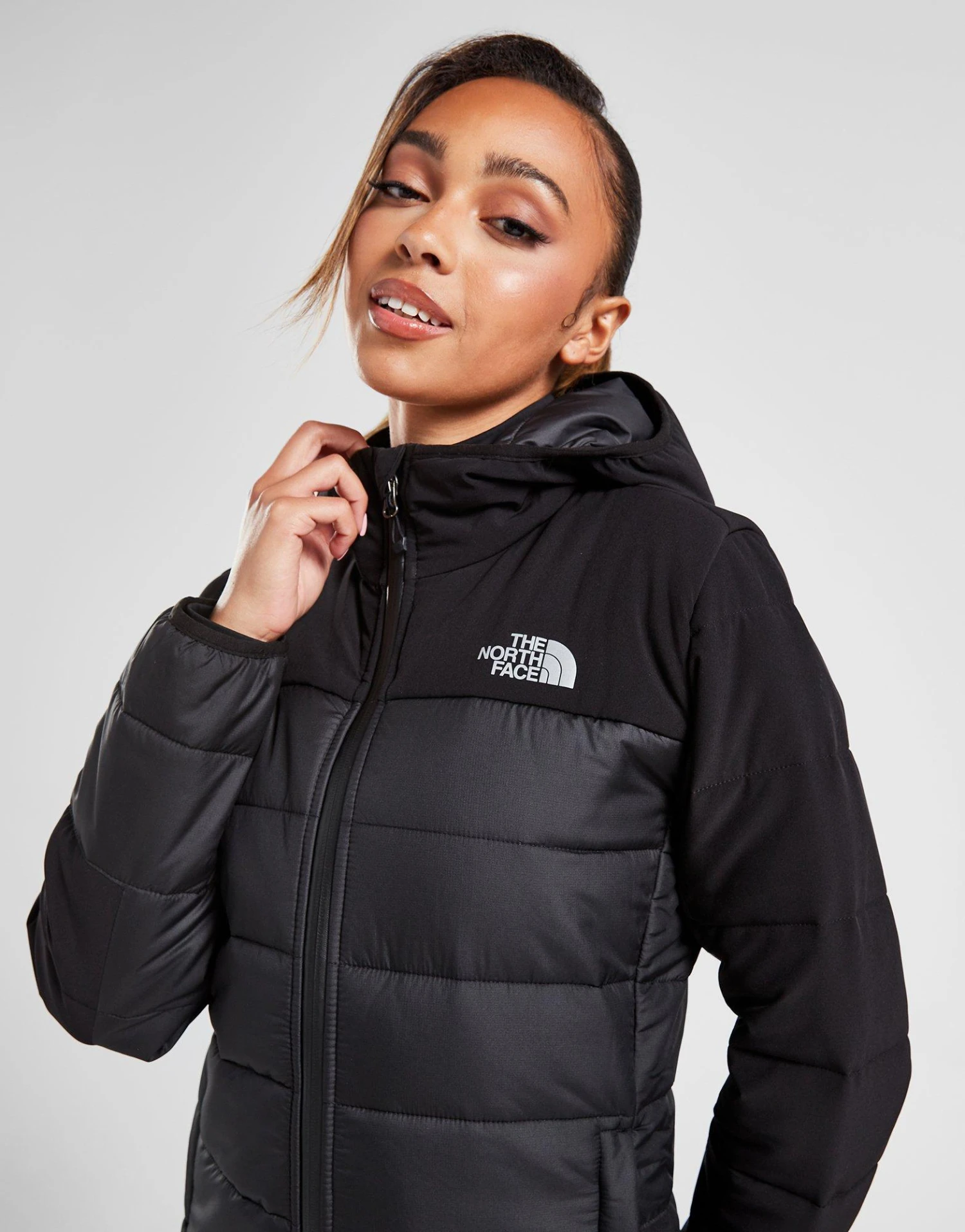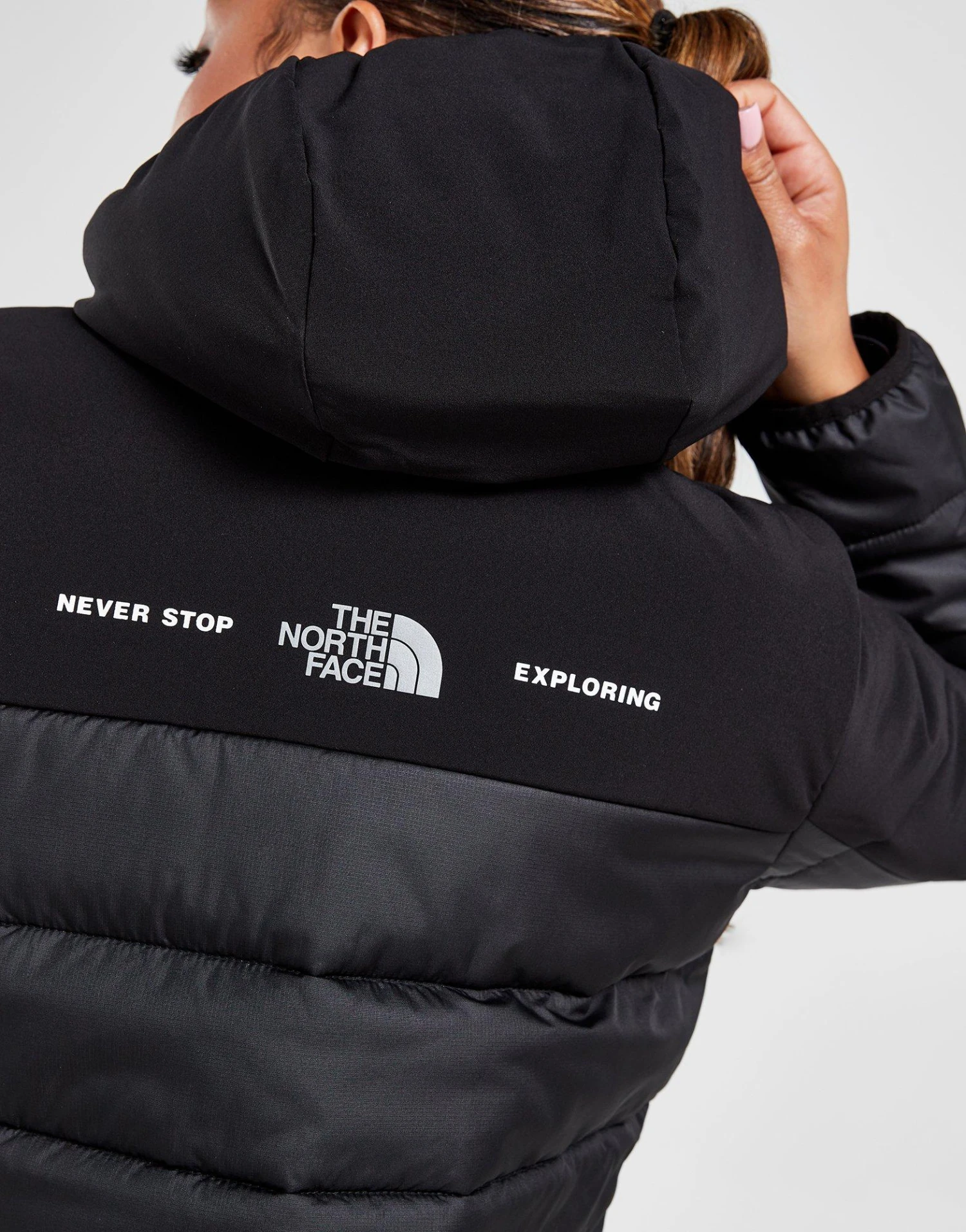 Lock out the cold in this women’s Never Stop Exploring Synthetic Jacket from The North Face. Exclusive to JD, this jacket is cut from a durable recycled poly fabric that’s packed with a synthetic Heatseaker fill for lightweight warmth. It features full zip fastening so you can switch up your style, a hood for essential coverage and elastic cuffs to hold the shape. With pockets for storage, it’s signed off with TNF branding to the chest and thigh. Machine washable. | Our model is 5’8″ and wears a size small.