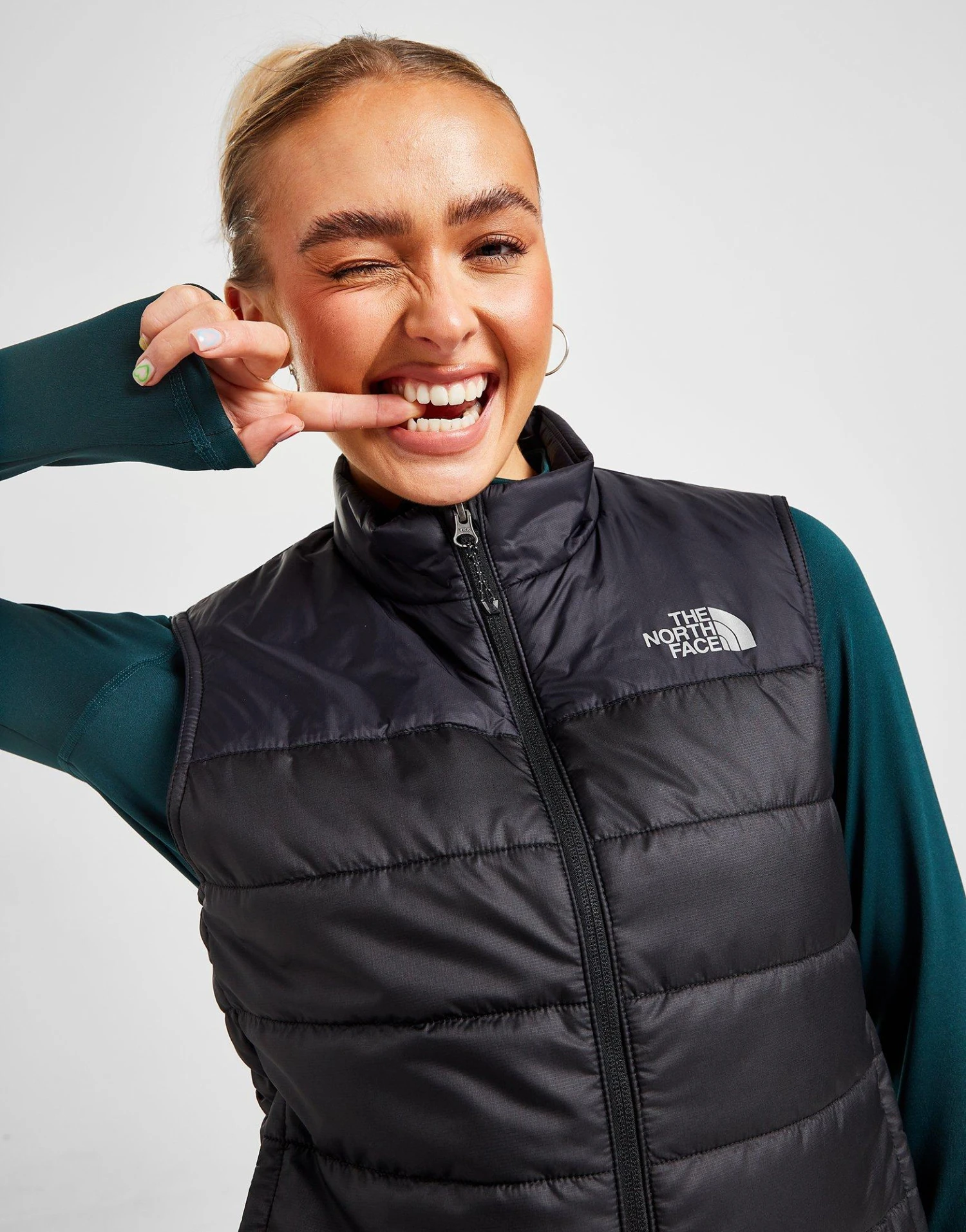 Exclusive to JD. Take on the cold this season with style in this women’s NSE Synthetic Gilet from The North Face. In a Black colourway, this snug-fit layer is made from synthetic nylon fabric, with lightweight insulation for essential warmth. It has a full zip front that extends up the neck, along with elasticated trims to keep out any chill. This gilet is finished off with zippered side pockets and contrasting Simple Dome badges to the chest and back. Machine washable. | Our model is 5’8″ and wears a size small.