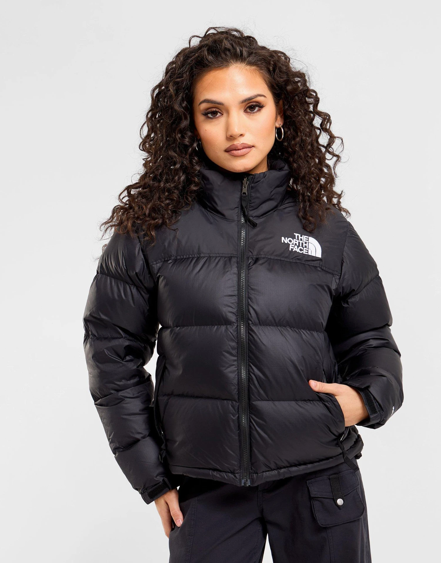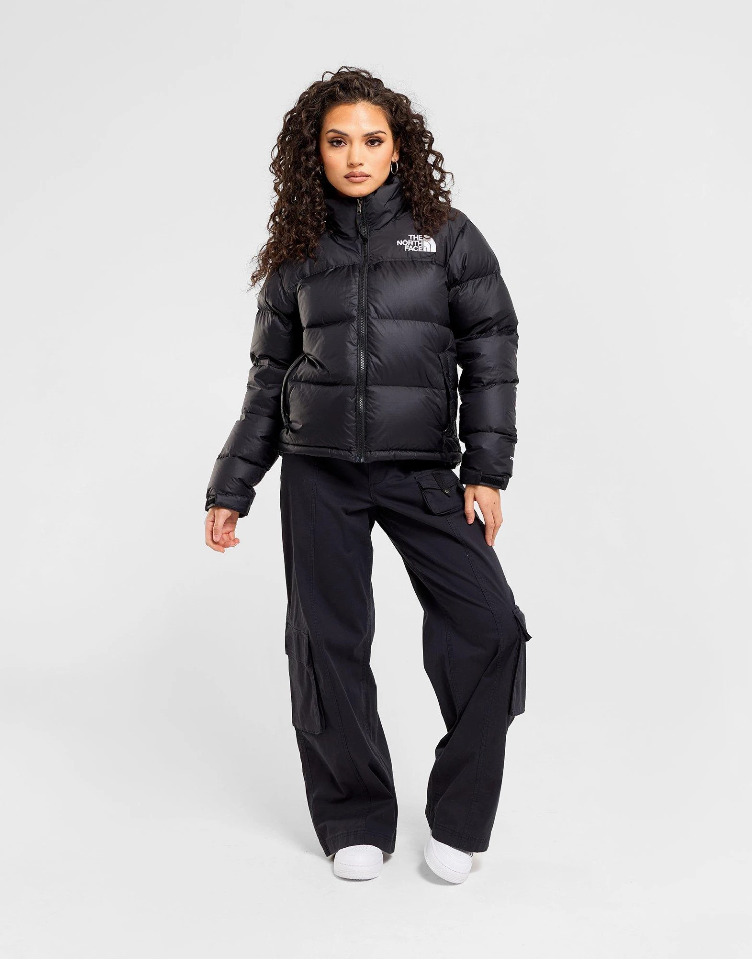 Zip up and bring the heat in retro style with this women’s Nuptse 1996 Jacket from The North Face. In a black colourway, this boxy-fit jacket is made from durable, water-resistant nylon, with cosy RDS goose down for premium warmth in those winter months. It features a full zip fastening, a raised collar and a bungee cinch hem for a custom wear. With adjustable Velcro cuffs and zippered side pockets, this coat is finished with iconic TNF branding to the chest and back in white. Machine washable. | Our model is 5’8″ and wears a size small.