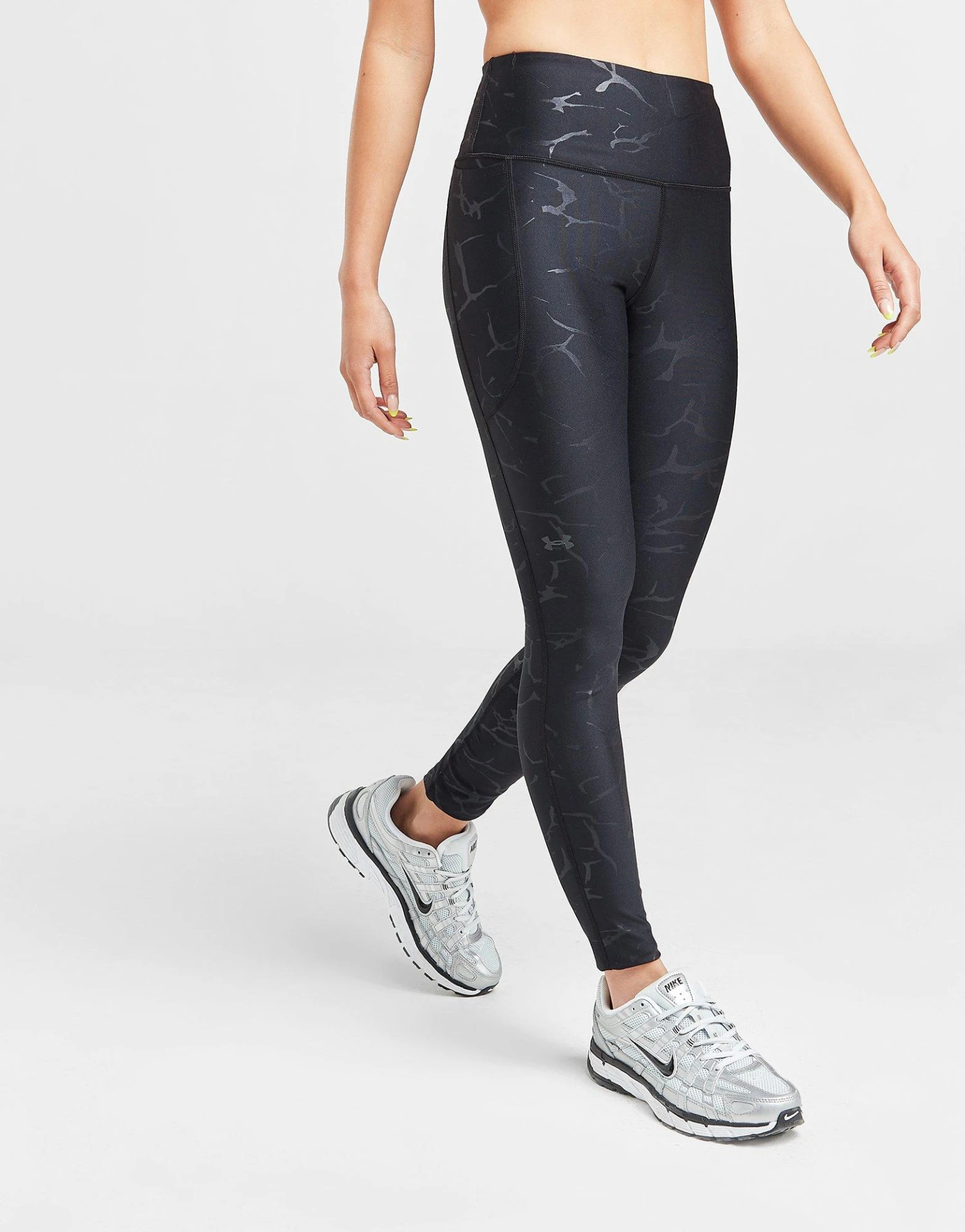 Update your gym ‘drobe with these women’s Emboss Tights from Under Armour. In a Black and Jet Grey colourway, these slim fit tights are cut from light, stretchy HeatGear fabric for flexible comfort. They feature an elasticated, high-rise no-slip waistband for a relaxed fit, with built-in tech to wick away sweat. They have a small side pouch for storage and are finished up with signature UA branding to the leg. Machine washable | Our model is 5’6″ and wears a size small.