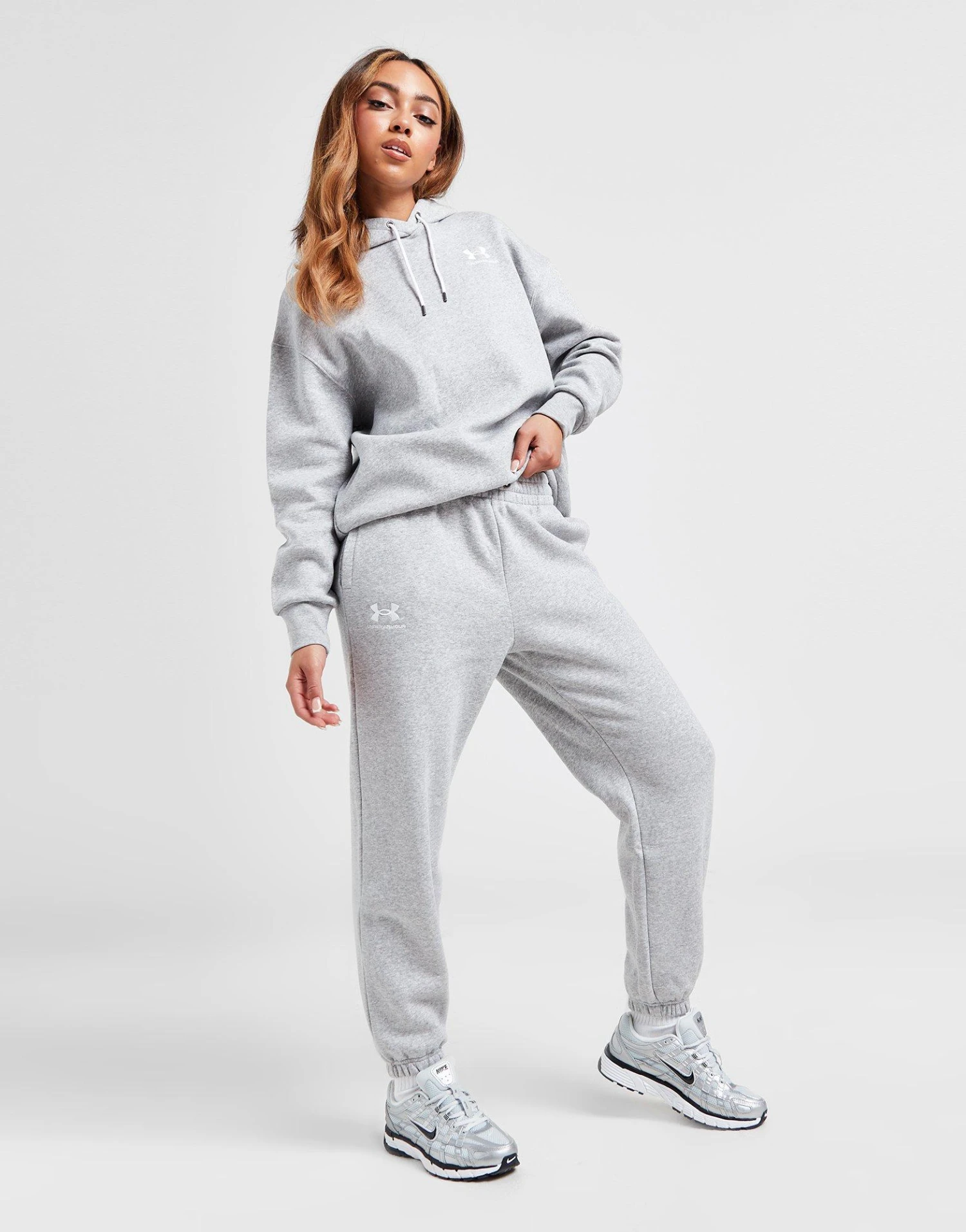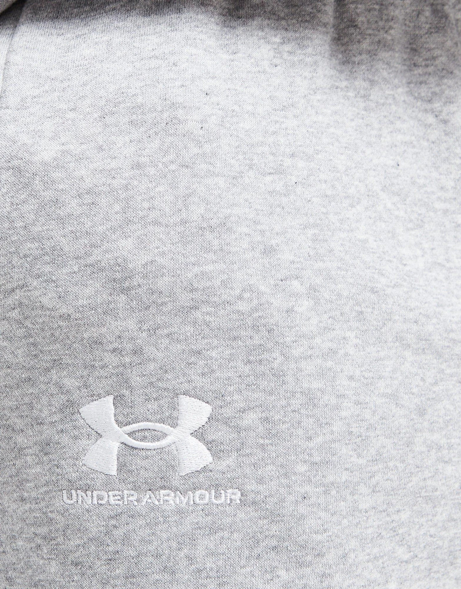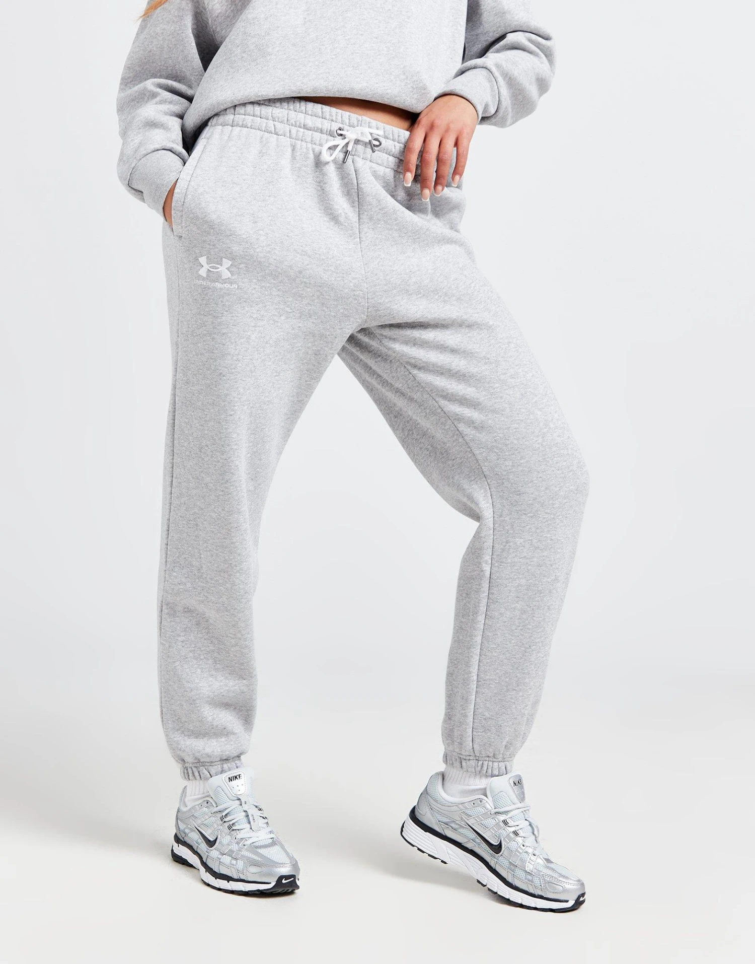 Level up your comfort on chill days with these women’s Essential Fleece Joggers from Under Armour. In a Mod Grey Light Heather colourway, these standard fit joggers are cut from soft fleece fabric for all-day comfort. They feature an elasticated waistband and adjustable drawcord for the perfect fit, with ribbed cuffs for showing off your sneaks and side pockets for your essentials. Finished up with a signature Under Armour logo to the leg. Machine washable | Our model is 5’5.5″ and wears a size small.