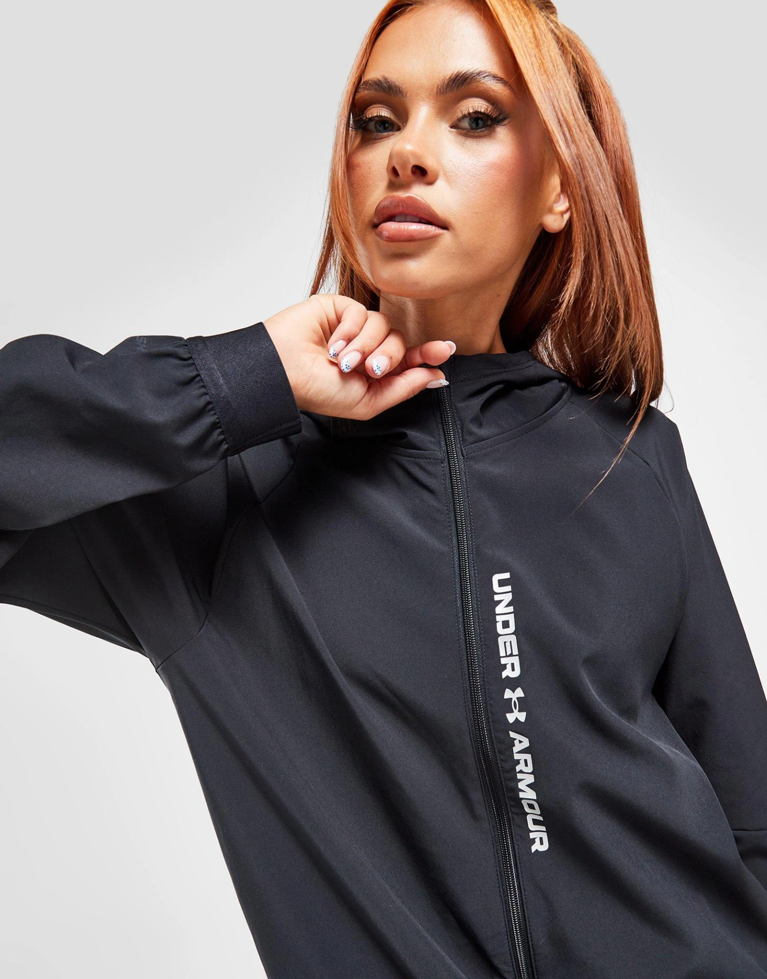 Layer up in this women’s Woven Wordmark Full Zip Jacket from Under Armour. Coming in a Black colourway, this jacket is cut from a lightweight but durable woven poly fabric for lasting wear and comfort. It features full zip fastening so you can switch up your coverage, a fixed hood for downpours, and elastic trims to elevate the fit. With side pockets for storage, it’s signed off with with an Under Armour wordmark to the front. Machine washable.