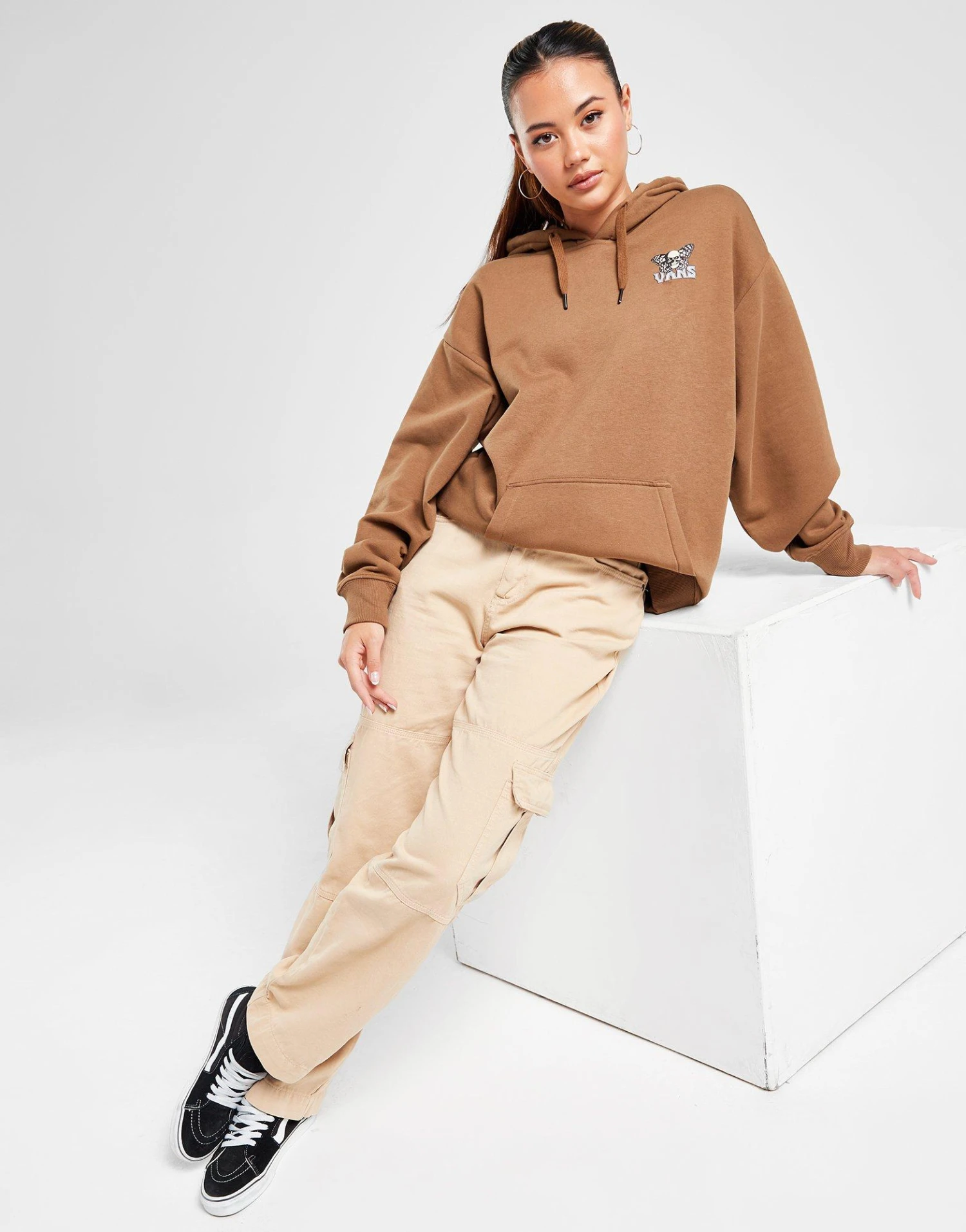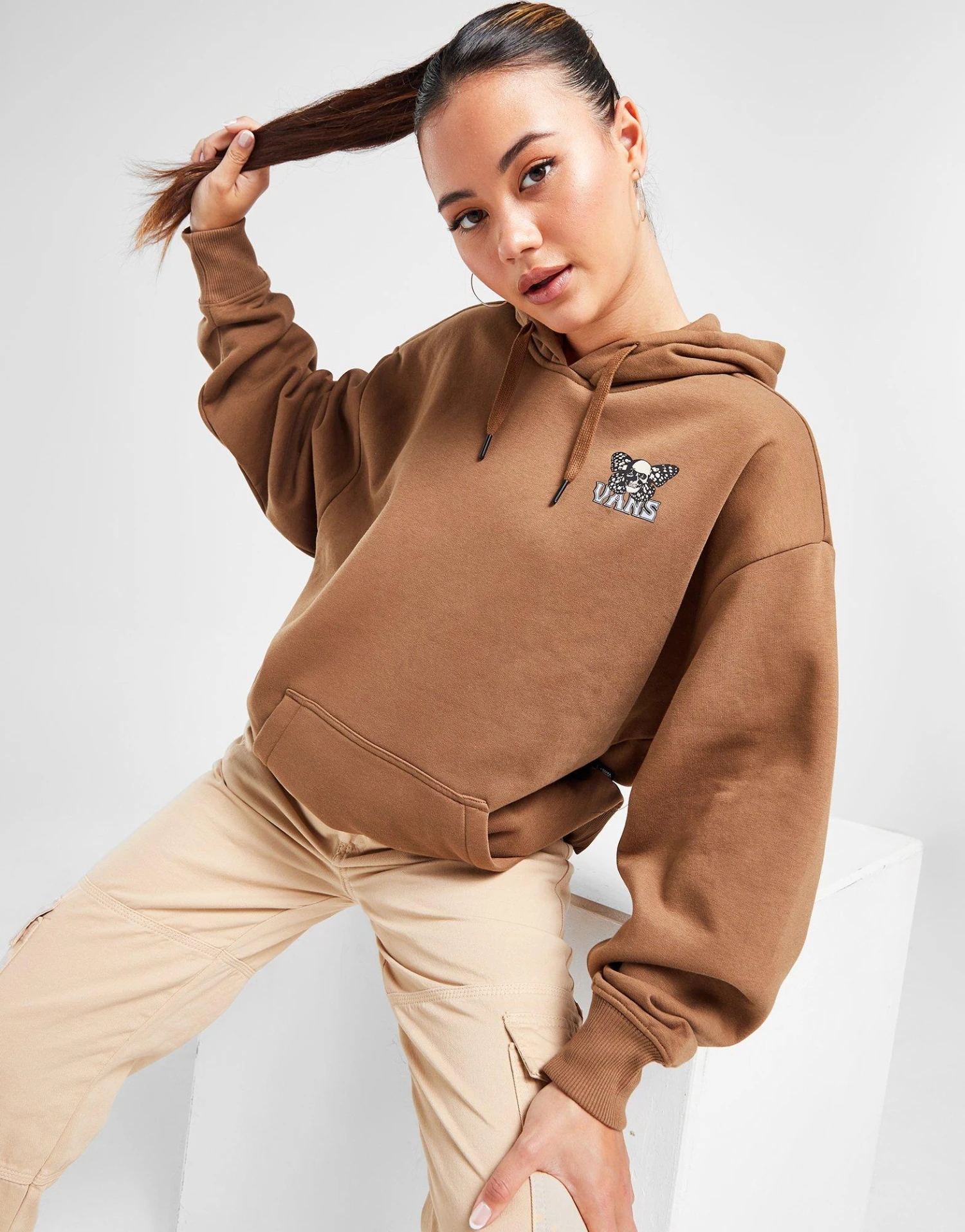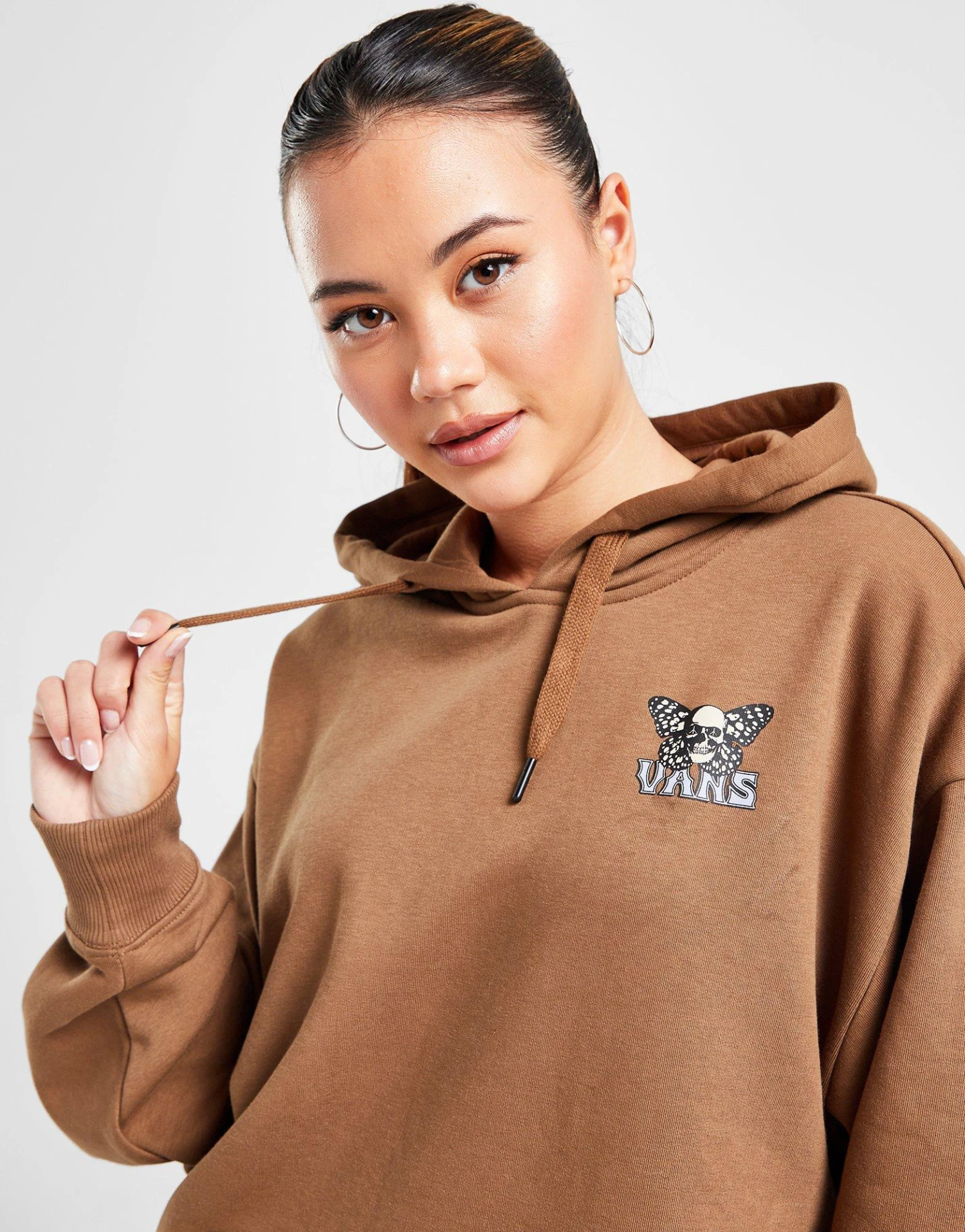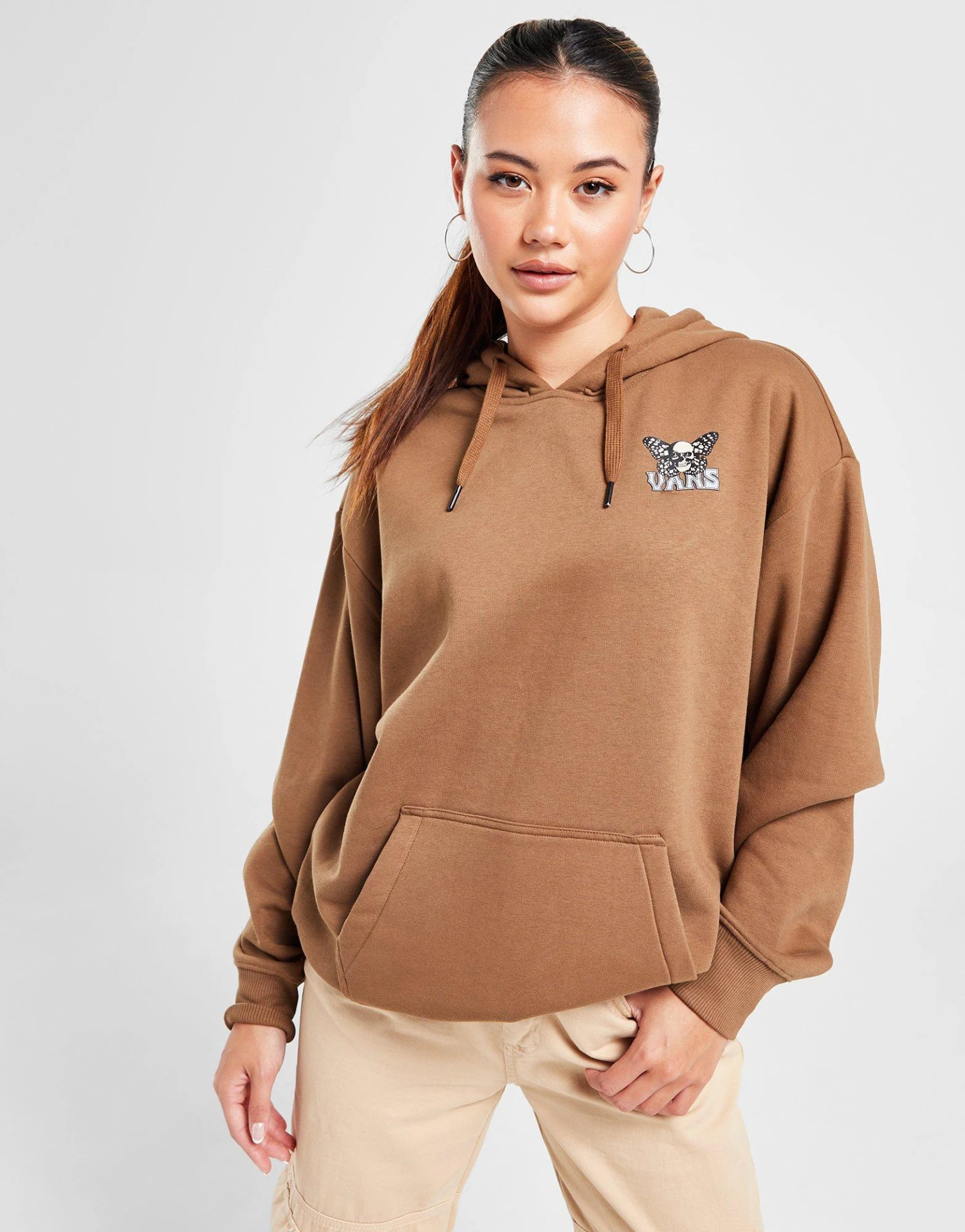 Switch up you layer game with this men’s Skullfly Hoodie from Vans. In a Brown colourway, this oversized pullover has dropped shoulders, a roomy kangaroo pocket and a drawcord-adjustable hood for a cosy feel. It’s made from a soft, fleecy cotton-poly blend, with stretchy ribbed trims to add shape. This hoodie is finished off with old-school Vans branding to the front and back as well as a skull x butterfly graphic. Machine washable. | Our model is 5’6″ and wears a size small.